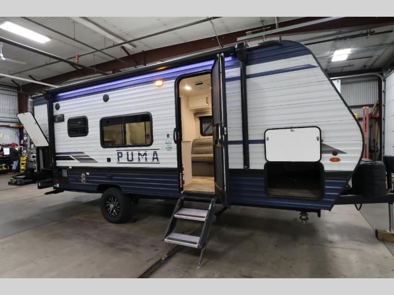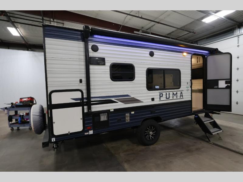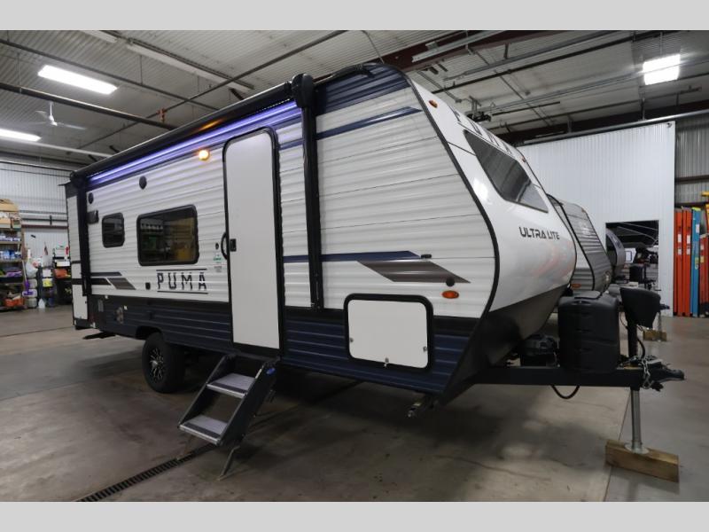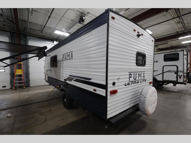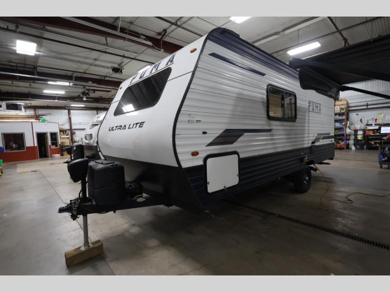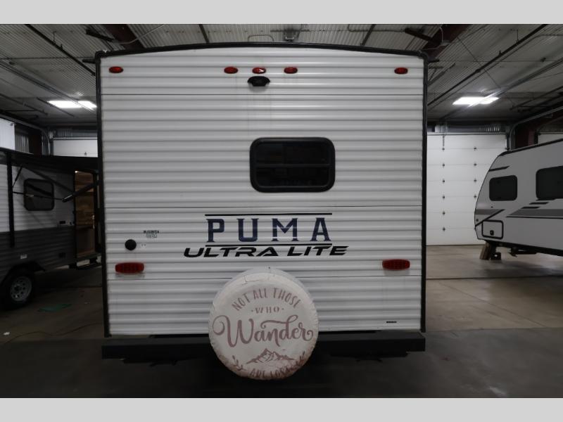 With any Puma Ultra Lite travel trailer by Palomino, you will experience a lighter weight RV that is eco-friendly and offers great fuel efficiency with maximum towability. The exterior offers an AlphaPly roofing membrane and a Darco wrapped underbelly for durability and years of use, a power tongue jack for easy setup, a Super Lube axle, a front diamond plate to protect against road debris, front and rear stabilizer jacks, plus solar and WiFi prep. Inside, there is LED ceiling lights, Beauflor linoleum for durability and easy cleanup, a decorative kitchen backsplash, contemporary hardware, light and bath fixtures for style, a divided silverware drawer for organization, and a 78" interior height.