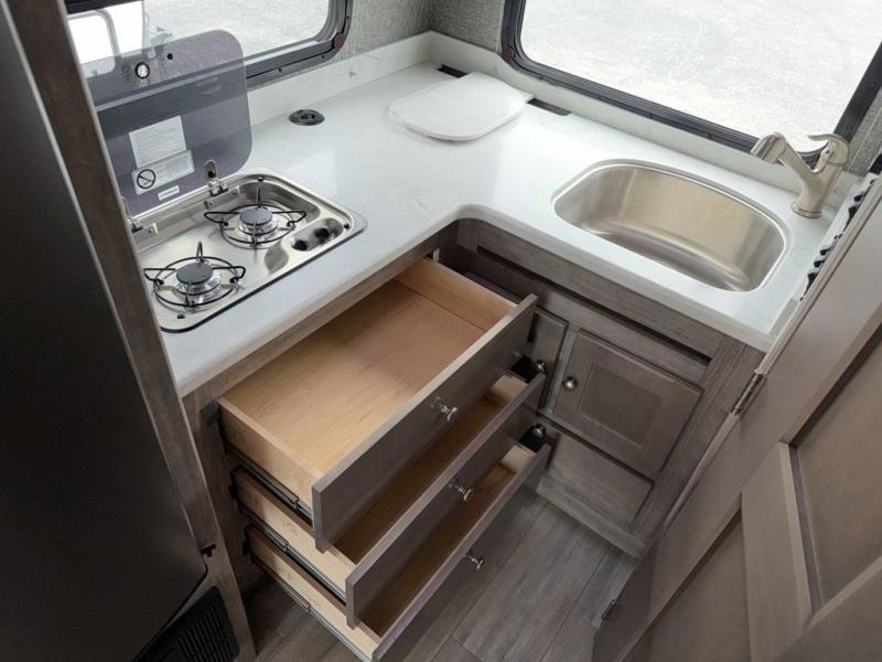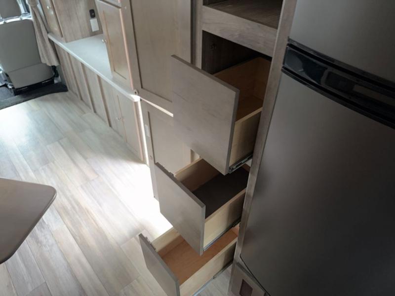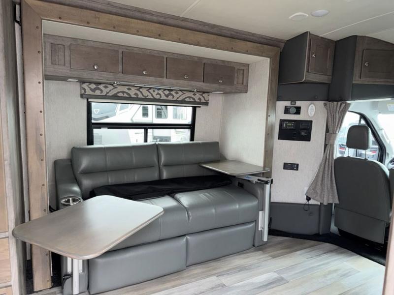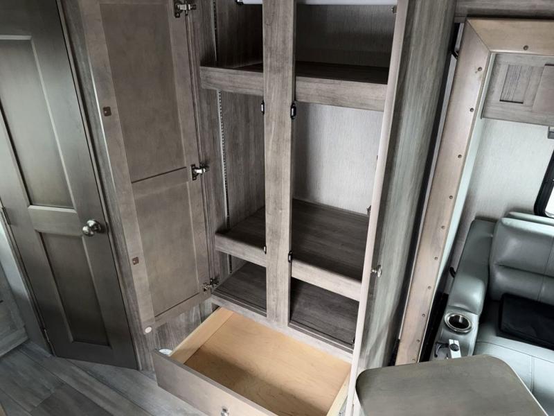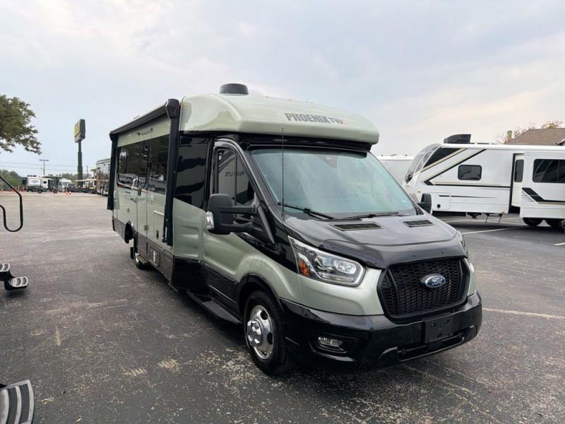 With any Phoenix TRX Class B+ gas motorhome by Phoenix USA, you will love the aerodynamic body styling with curved walls and roof, the smooth gel-coat fiberglass exterior, the Top Grade 3 Diamond shield installed on critical areas on the painted surfaces for protection, and the frameless automotive style windows. The Ford cab floor has added double heat and sound insulation for a quieter ride, and each coach has front end alignment, plus the One Key single key system for the coach and storage compartments. The interior offers a power tower pop-up electrical outlet and USB ports beside the kitchen sink to keep everything charged, shaker cabinet doors and drawer fronts, solid wood table tops and counter extension, plus luxury vinyl flooring for style and easy care. Make your selection today, and start traveling in style and comfort!