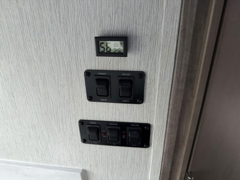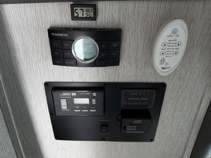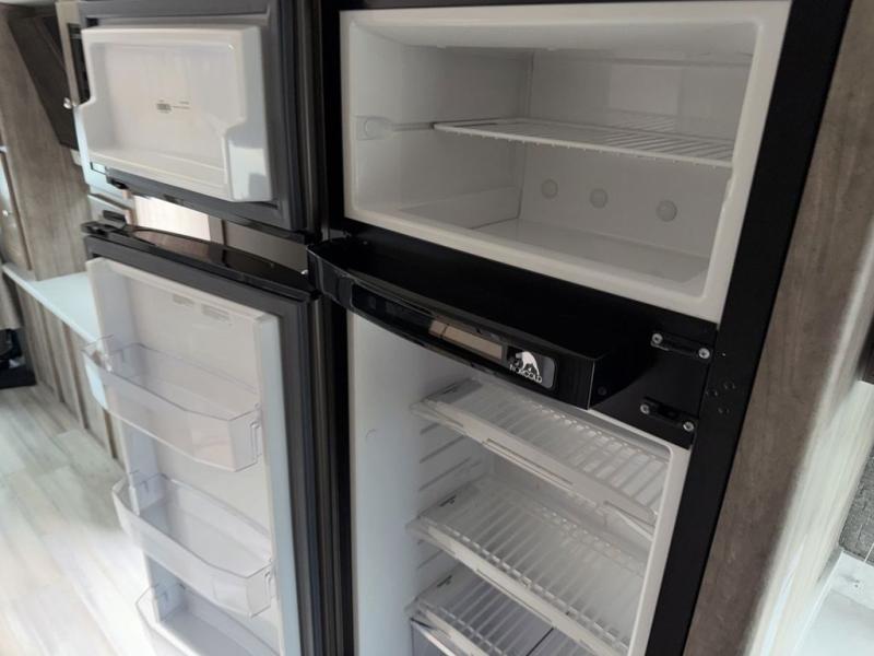 This is the longest coach in the Phoenix TRX lineup coming in at 25' 3" in length, plus there is a slide out for more interior space. The sofa with swivel tables here will provide a place for you to enjoy dining together, and there is an entertainment center across from the sofa for movie nights. A full bath includes a SanMarin macerator toilet, a bath sink with counter space, and a shower so you can freshen up each day. And when you've worked up an appetite, the kitchen with a two burner European range, 30" convection microwave, and 3-way double door refrigerator will let you cook and store food each day!