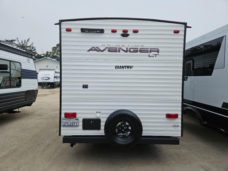 With any Avenger LT travel trailer by Prime Time, the exterior includes an aerodynamic front profile, a front diamond plate for protection on the road, and two rear stabilizer jacks. The interior offers seamless Carefree Congoleum flooring for easy cleanup and durability, pleated night shades throughout for privacy, a bottle opener, and extended ball bearing drawer guides. Other features include a 16,000 BTU furnace, a gas DSI water heater, a residential soundbar, and each has been prepped for a back up camera and solar.