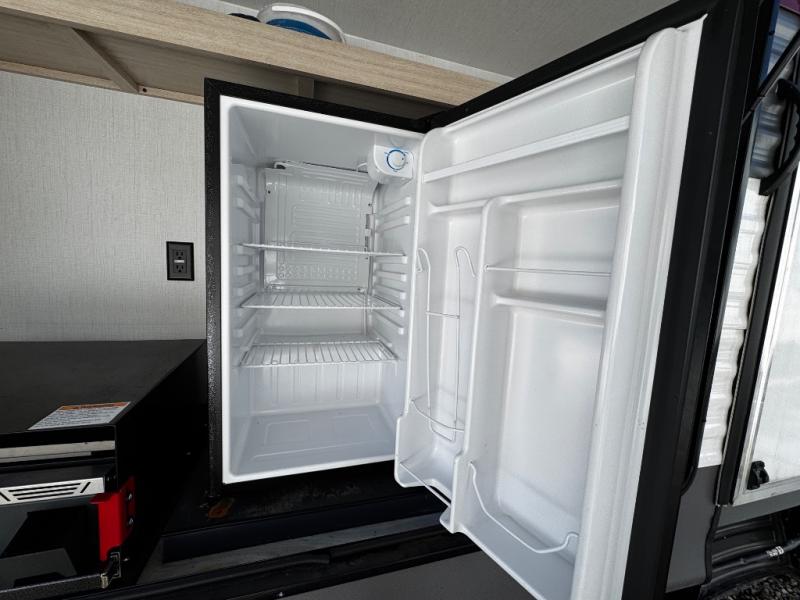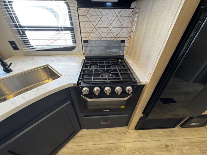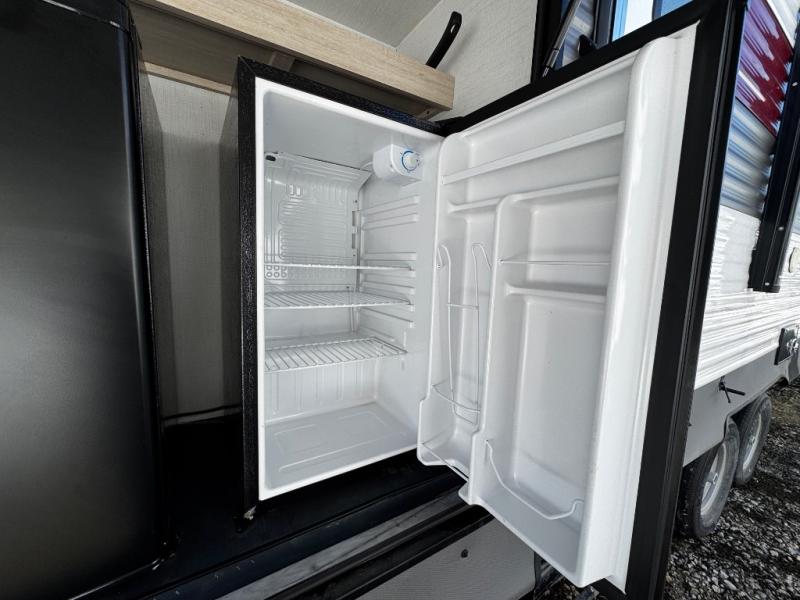 With any Avenger travel trailer by Prime Time, the exterior includes an aerodynamic smooth front metal, a diamond plate front rock guard for protection on the road, and four stabilizer jacks to keep your unit secure. There is a fully walkable roof plus an enclosed and heated underbelly that will help extend your camping season. The interior offers a 15,000 BTU air conditioner for the perfect climate inside, in-floor ducted heat, a systems monitor panel, and a Winegard 360+ antenna with Wi-Fi prep that will give you the option to stay connected as you camp. Each model also includes seamless Carefree Congoleum flooring, kitchen backsplash, shower pans in all models, and pleated nightshades throughout to name a few interior comforts!