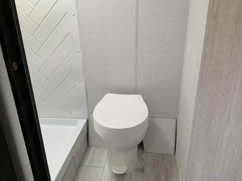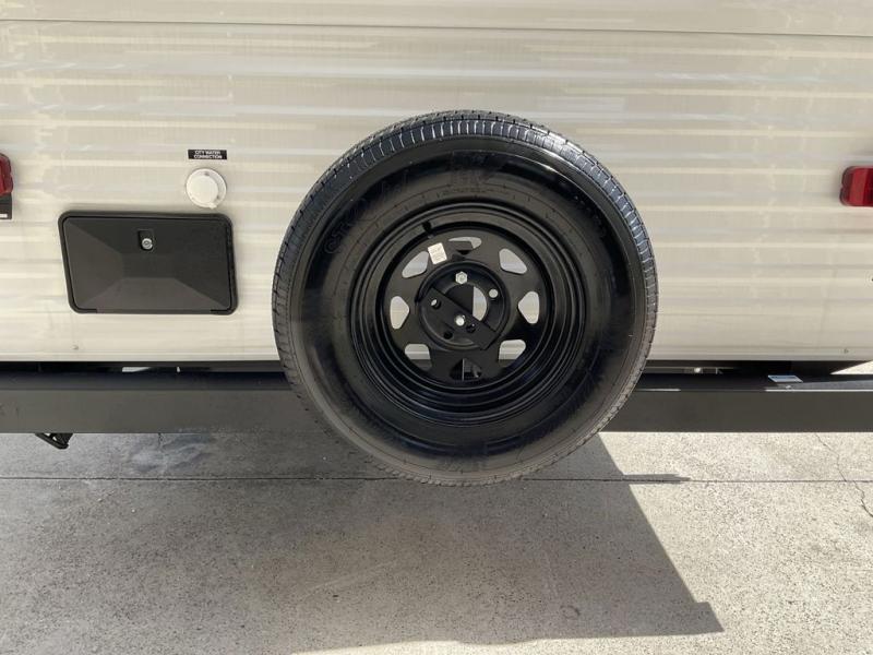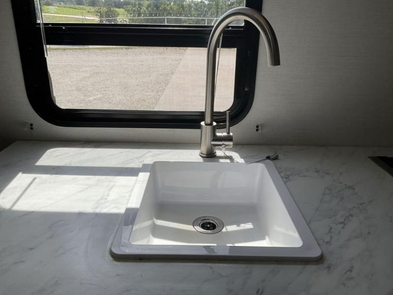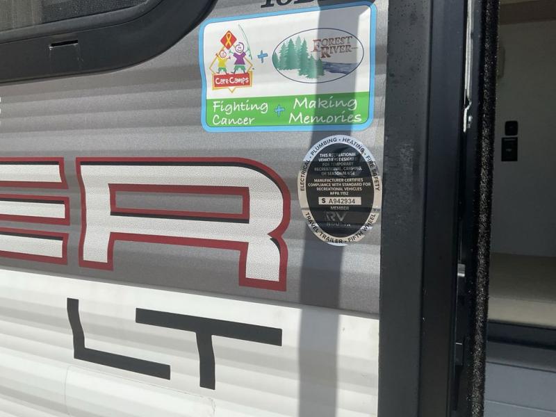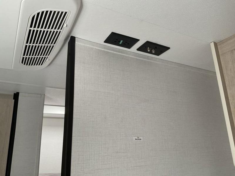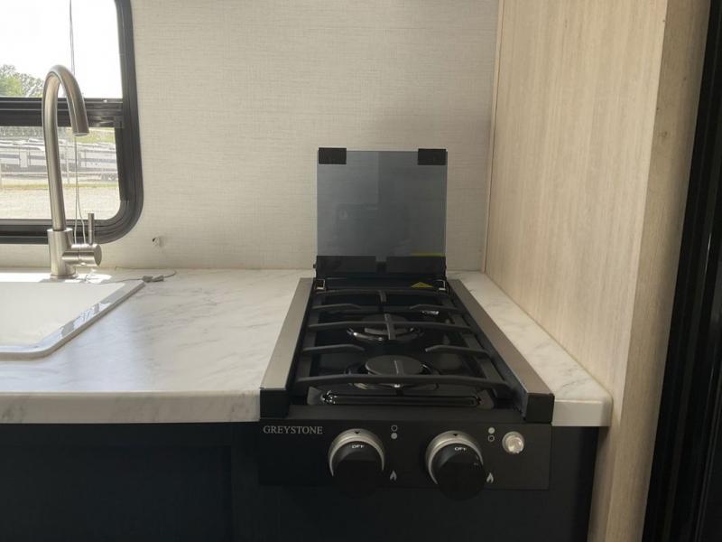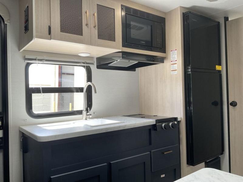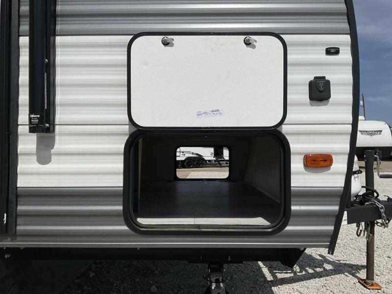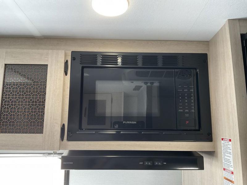 Compact and loaded with comfort and convenience for you to enjoy each and every camping trip! Because this trailer is easily towed by a minivan or SUV, you'll be ready in no time without having to purchase an extra vehicle to tow it. After a day of hiking, the kids will love sleeping on the bunk beds, and you can sleep on the front bed. Enjoy the LED-lit power awning as you make s'mores around the campfire or turn on the LED-lit outdoor speakers to have a dance party with friends and family. With enough storage for your valuables and board games, this trailer makes camping easy!