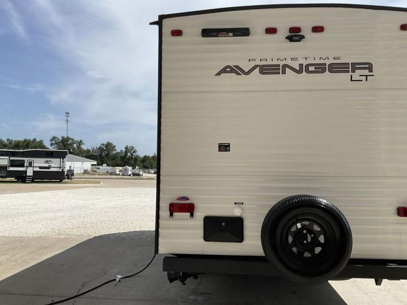With any Avenger LT travel trailer by Prime Time, the exterior includes an aerodynamic front profile, a front diamond plate for protection on the road, and two rear stabilizer jacks. The interior offers seamless Carefree Congoleum flooring for easy cleanup and durability, pleated night shades throughout for privacy, a bottle opener, and extended ball bearing drawer guides. Other features include a 16,000 BTU furnace, a gas DSI water heater, a residential soundbar, and each has been prepped for a back up camera and solar.