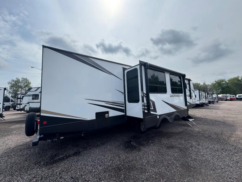 If you used to think that you had to spend a fortune to get a luxury RV, think again because the Prime Time LaCrosse travel trailer proves that you can combine luxury with value! The LaCrosse features premium vinyl flooring, solid surface countertops, an 82" interior ceiling height, motion-sensor LED lighting, and USB ports. On the exterior, the fully enclosed underbelly protects your unit so that you can adventure during colder weather, and the LED-lit electric awning is certainly a valuable feature that allows you to sit outside underneath some shade on a sunny afternoon. Come choose your model today!