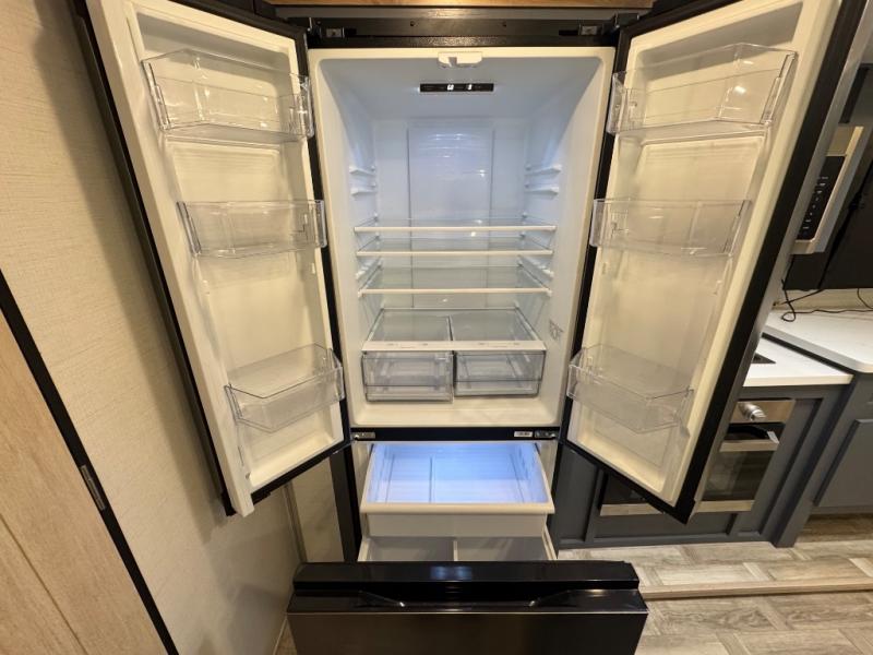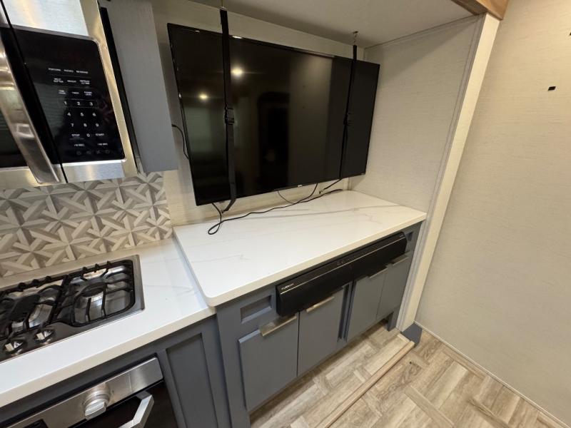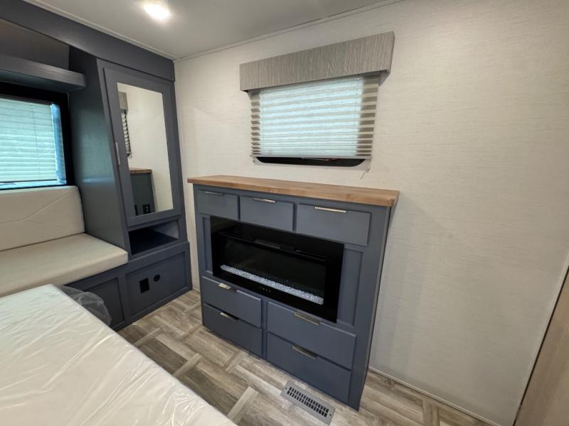 Two private bedrooms, a bath and a half, plus quad slides makes this a perfect home away from home for you and your family or friends. The bedrooms are private and on opposite ends with the front master featuring a king bed and fireplace as well as having access to a full bath. The rear bedroom is spacious with a queen bed slide, and a half bath which is convenient at night. The combined living and kitchen area with dual opposing slides allows plenty of space for relaxing and entertaining, and the chef of your group can easily be part of what is happening even when cooking. This unit also features tinted windows!