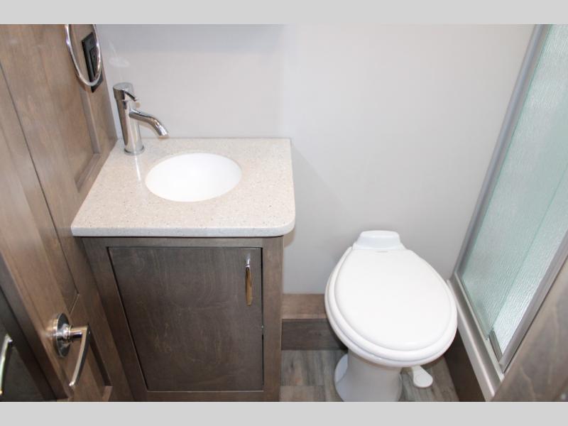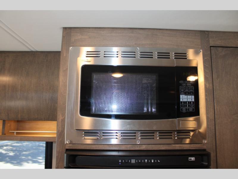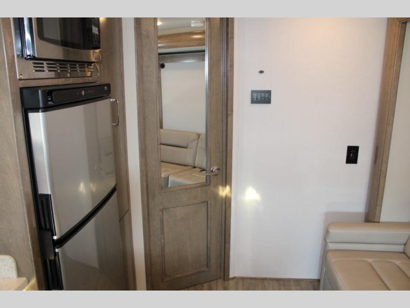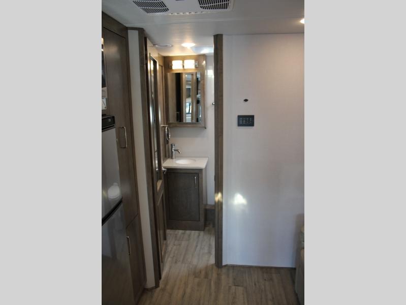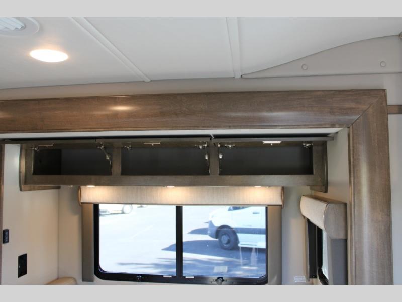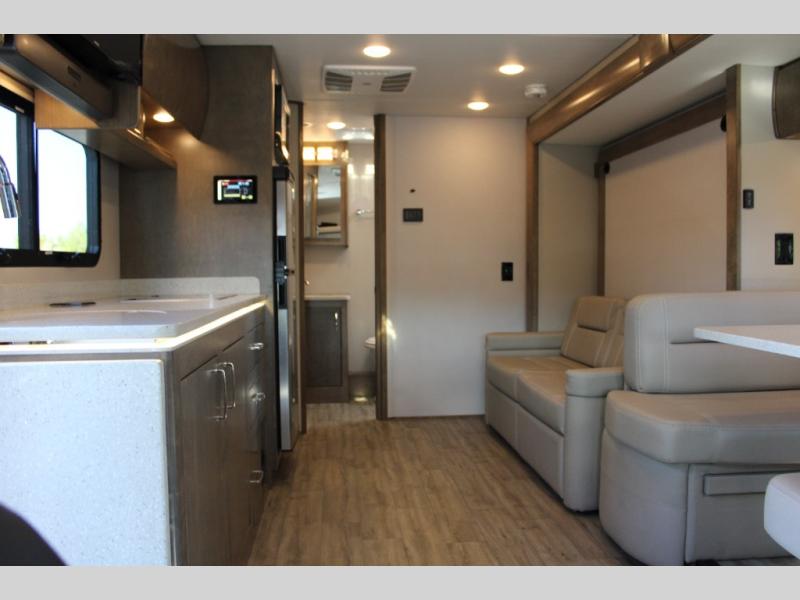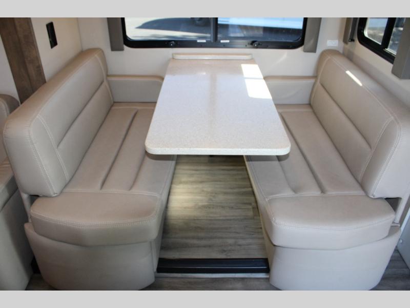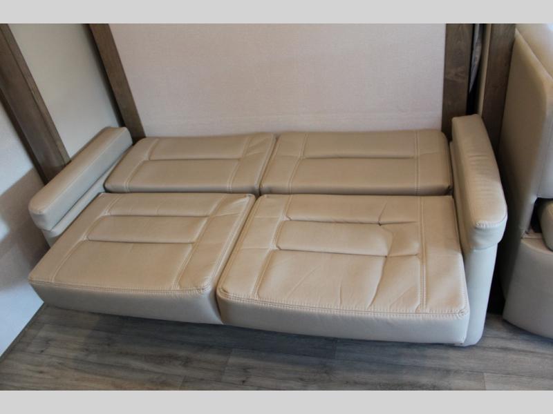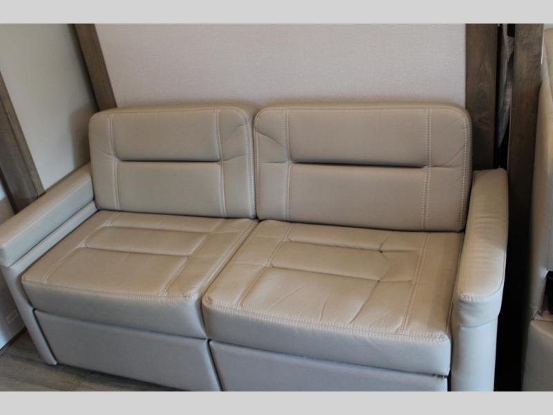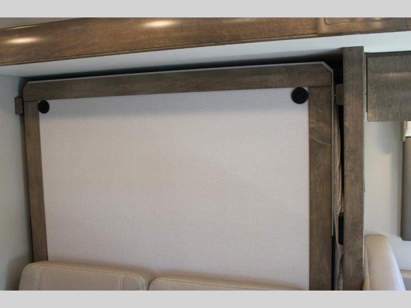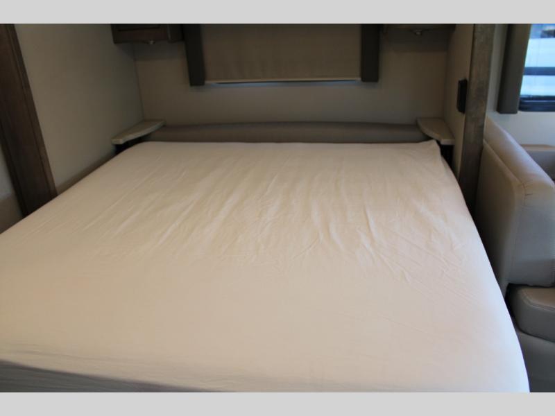 This is the perfect couples motorhome to explore the country! You will stay squeaky clean in the full rear bathroom with 24" x 36" shower, and a large closet to store your clothes, towels, and other toiletries. Depending on what time you enter this coach will determine whether you see the sofa or the 65" x 72" Murphy bed. The kitchen has a two burner cooktop, a convection microwave, and an 8 cu. ft. refrigerator to prepare home cooked meals, and a booth dinette to enjoy them at. The 46" x 80" bunk mattress over the cab lets another member join in on the adventure and the booth dinette offers sleeping space as well.