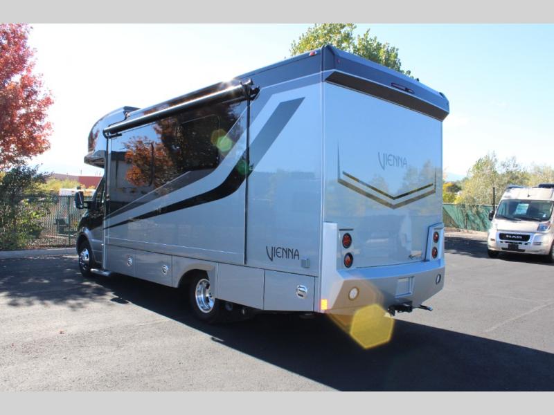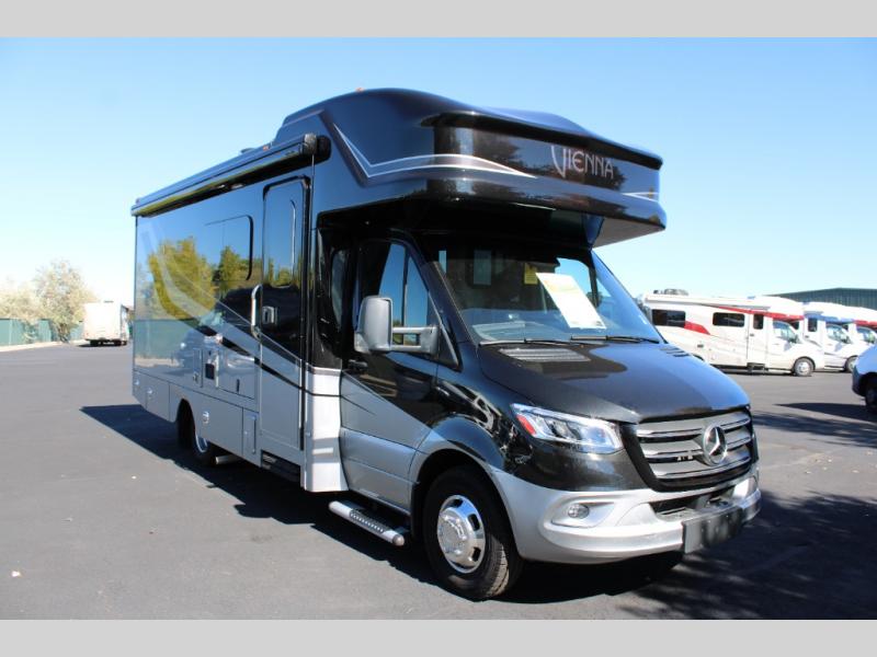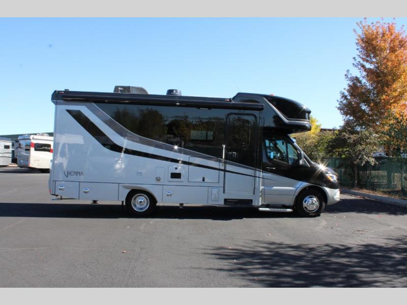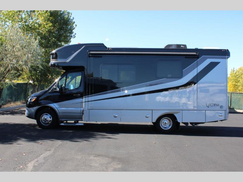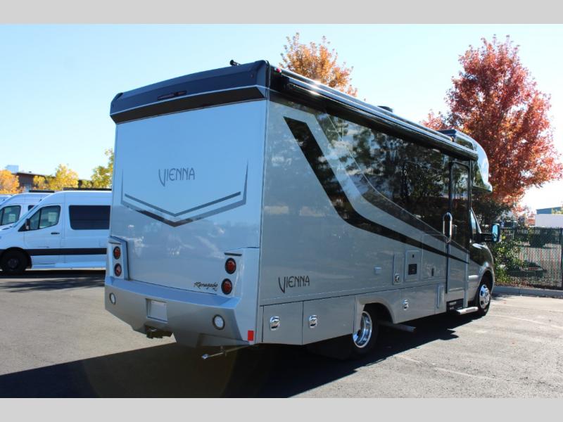Luxury is in the details of each one of these Renegade Vienna Class C diesel motorhomes! They are built on a Mercedes-Benz Sprinter chassis, and include a four point hydraulic leveling system with app control, a 2000w true sine wave hybrid inverter, a 3.6KW LP generator with auto gen start, and Winegard Connect 2.0. You will appreciate the Truma™ Comfort Plus tankless water heater when showering, the accent lighting at the galley countertop for style, and the USB charging in the living area, bedroom and kitchen to keep your electronics ready. The Maple hardwood cabinetry completes the luxurious décor throughout the inside. Make your selection today!