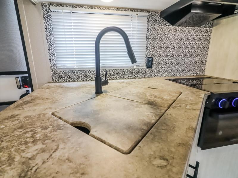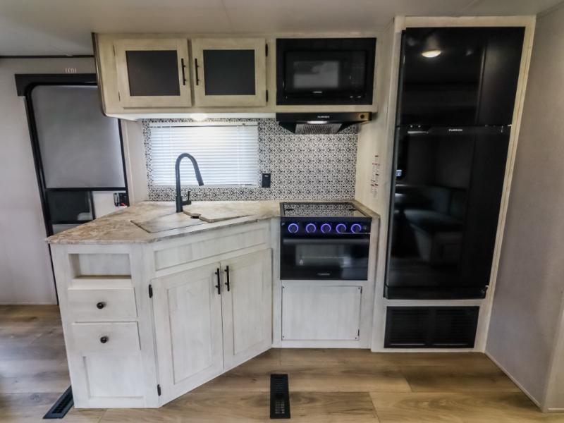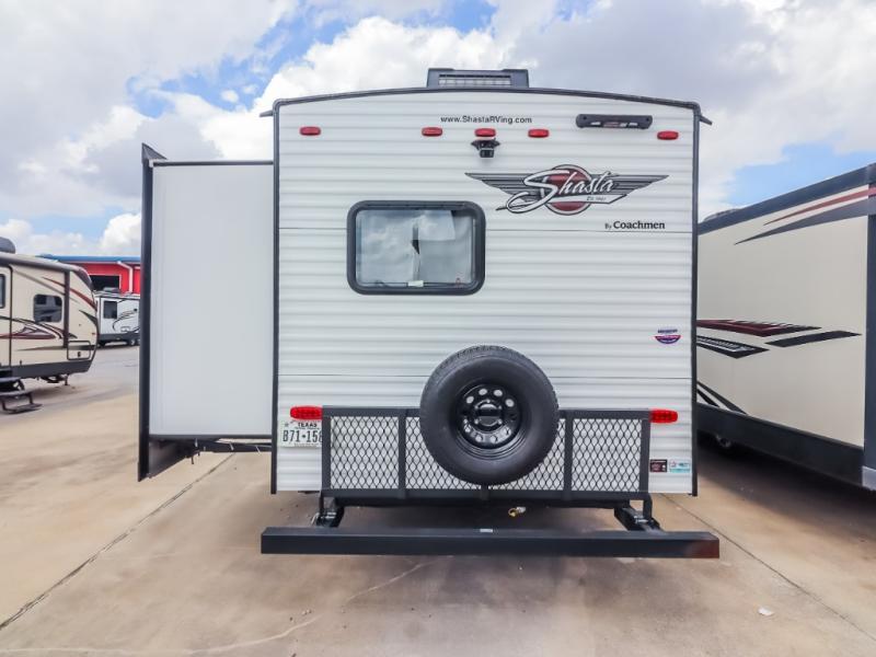 With each Shasta travel trailer by Shasta RVs, premium construction products are used such as radius wood rafters, wall studs on 16” centers, cambered steel I-beam frame, Congoleum flooring, and seamless countertops. Also included is an aerodynamic radius front profile, a front colored rock guard to protect against road debris, a straight axle with electric brakes, and a power tongue jack for easy setup. The interior offers decorative cabinet pulls, USB charging stations, an under-mount kitchen sink with a sink cover, and more providing value and convenience. Since there is King WiFi prep you have the option to work remotely, plus you can add electric stabilizer jacks, aluminum wheels, roof mounted 200 watt solar panel, and more available options!