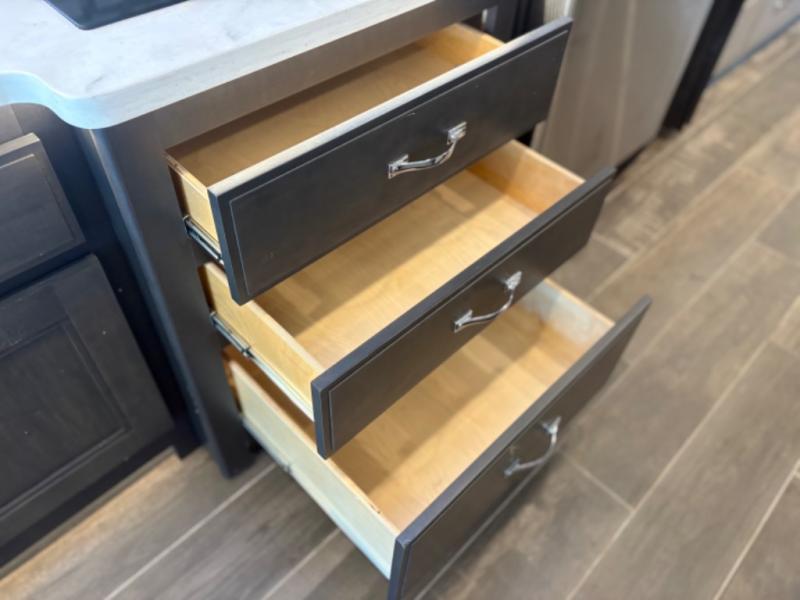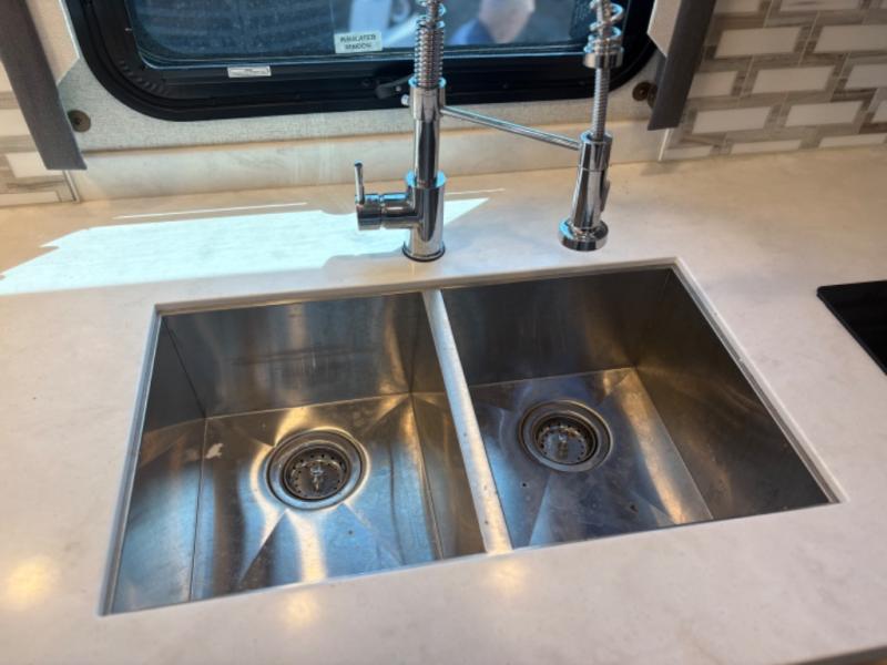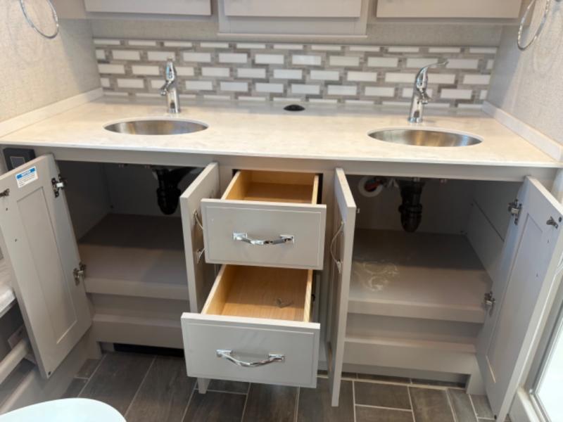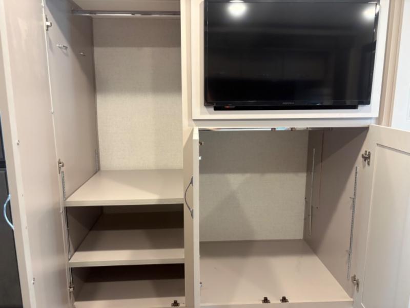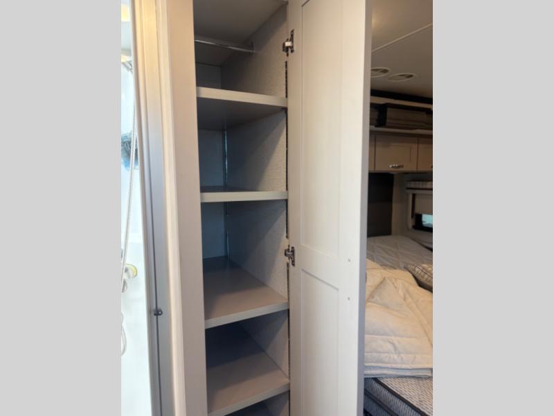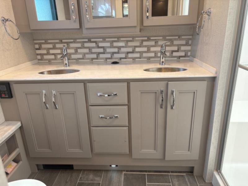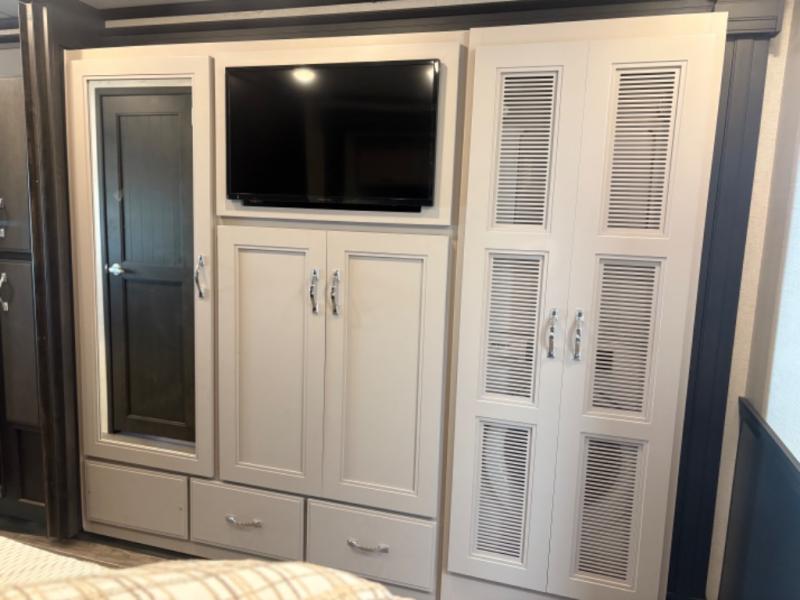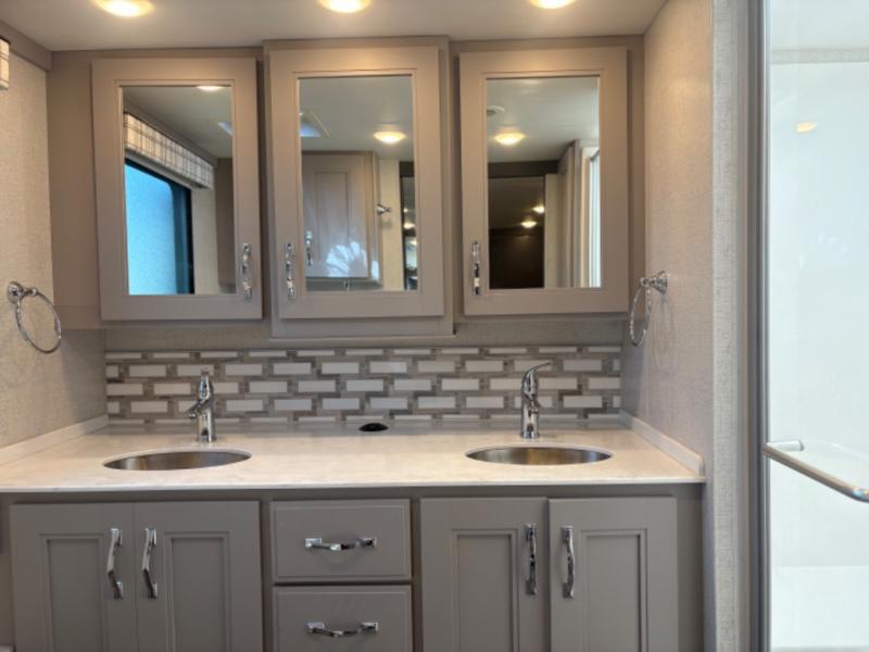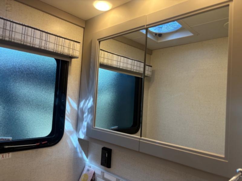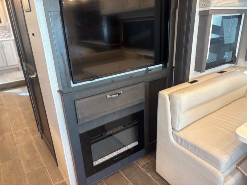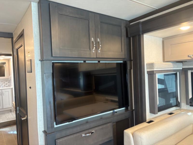 Advanced Technology and Entertainment: Stay connected and entertained with features like the Rapid Camp+™ control system, touchscreen dash radio with GPS, and multiple flat-screen TVs. The Oxygenics® shower head and skylight in the bathroom provide a spa-like experience, ensuring you feel refreshed and rejuvenated during your travels.