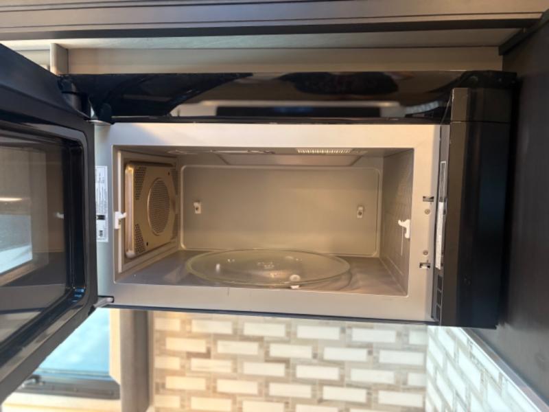 Gourmet Kitchen: Prepare meals like a chef with the well-appointed kitchen, which includes a residential refrigerator, a 3-burner cooktop, a convection microwave, and ample counter space. The solid surface countertops and stylish backsplash enhance the kitchen's functionality and aesthetics.