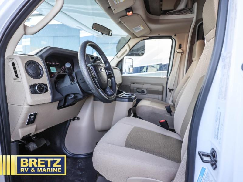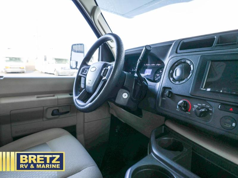 Experience a smooth ride to each destination with the Thor Motor Coach Chateau Class C gas motorhomes! There is a Ford E-Series chassis or optional Chevrolet chassis on select models, and each model includes an 8,000 lb. trailer hitch to bring the family car along. They are constructed with a welded tubular aluminum roof, sidewall cage construction, vacu-bond laminated roof, walls, and floor with block foam insulation to keep the heat and air conditioning inside. The slick fiberglass exterior with graphics package and black framed windows are sure to turn heads down the highway too. Inside, you'll be met with residential vinyl flooring, window privacy shades, a power bath vent, and pressed laminate kitchen countertops. There is even a tankless water heater for endless hot showers, a 4.0 kw gas generator to keep you going, and solar prep for off-grid capabilities!