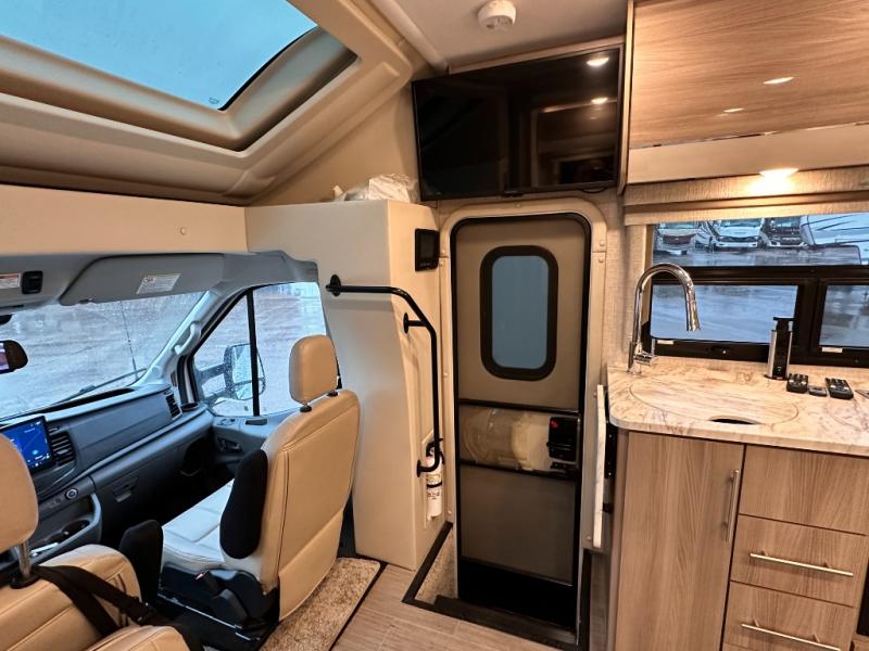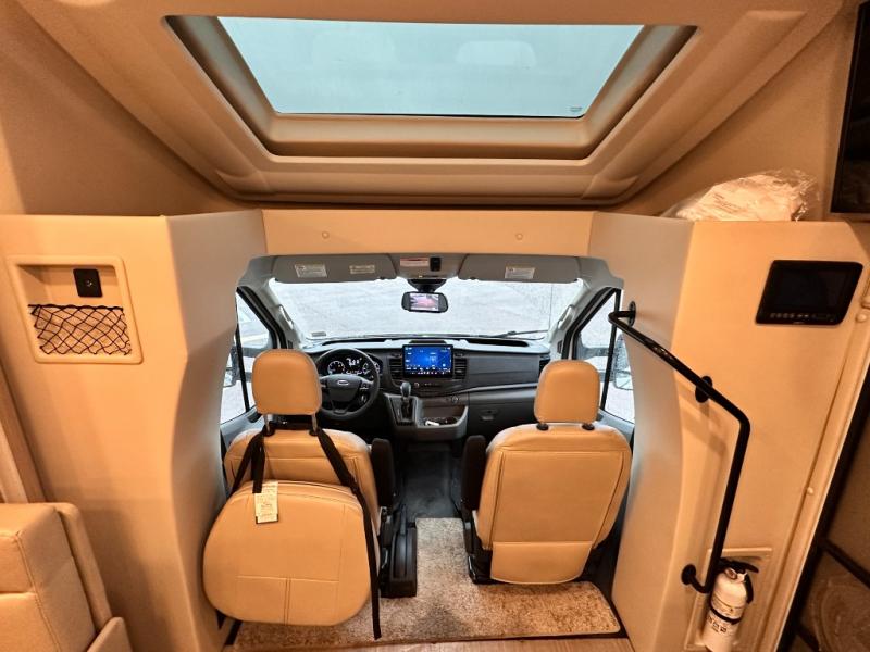 The Thor Motor Coach Compass AWD Class B+ gas motorhome is small but mighty! It includes all-wheel drive, and it is built upon a Ford Transit chassis, 3.5L V6 Eco Boost turbo gas engine, and Ford ten-speed automatic overdrive transmission. The Ford safety features provide excellent care while driving, and you can stay connected to your Compass AWD with the FordPass Connect. The power patio awning with LED lights can be moved out into position with just one touch on your cell phone thanks to the Rapid Camp+ multiplex control system. You will have a 100W solar panel with controller, a 15,000 BTU air conditioner, a Winegard ConnecT 2.0 Wi-Fi/4G/TV antenna, and a tankless water heater as some of the top electrical and plumbing features.