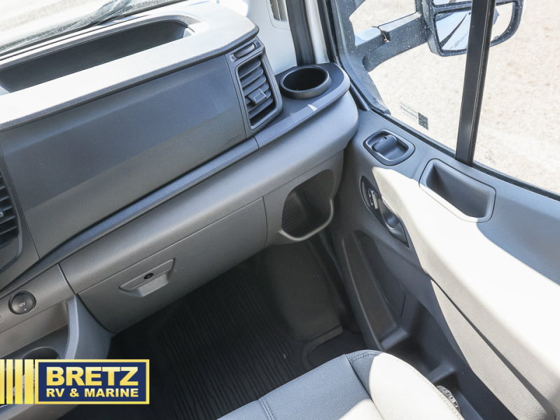 The Thor Motor Coach Compass AWD Class B+ gas motorhome is small but mighty! It includes all-wheel drive, and it is built upon a Ford Transit chassis, 3.5L V6 Eco Boost turbo gas engine, and Ford ten-speed automatic overdrive transmission. The Ford safety features provide excellent care while driving, and you can stay connected to your Compass AWD with the FordPass Connect. The power patio awning with LED lights can be moved out into position with just one touch on your cell phone thanks to the Rapid Camp+ multiplex control system. You will have a 100W solar panel with controller, a 15,000 BTU air conditioner, a Winegard ConnecT 2.0 Wi-Fi/4G/TV antenna, and a tankless water heater as some of the top electrical and plumbing features.