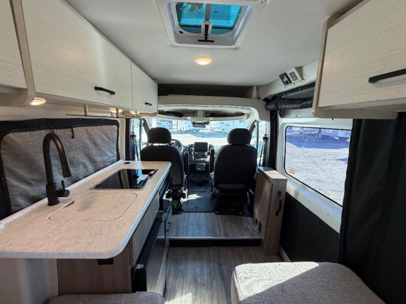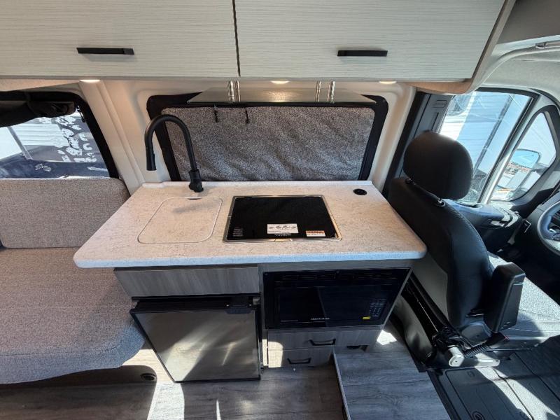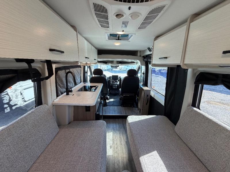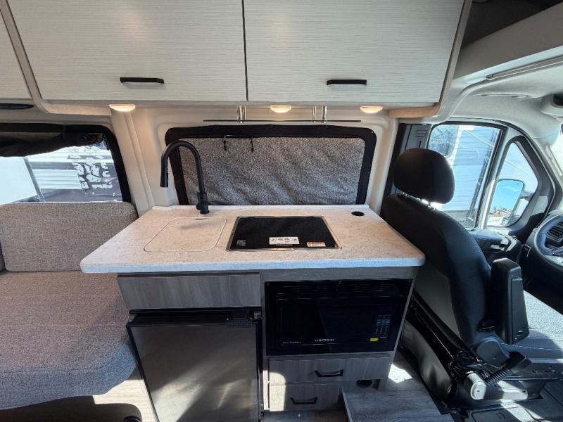 Plenty of amenities are packed into the Thor Motor Coach Dazzle Class B motorhome. Built on the RAM ProMaster® 3500XT gas window van chassis, these come with a 3,500 lb. trailer hitch, an Onan® RV QG 2800 gas generator, and a Truma® Combi Eco LP furnace and water heating system. You'll have a convenient Rapid Camp+® Multiplex wiring control system, which allows you to operate features like lights, generator, slides, awnings, HVAC, and more from an easy to use small handheld remote. Inside, you'll enjoy residential vinyl flooring, a soft-touch vinyl ceiling, and pressed countertops with an undermount sink and sink covers to name a few comforts.
