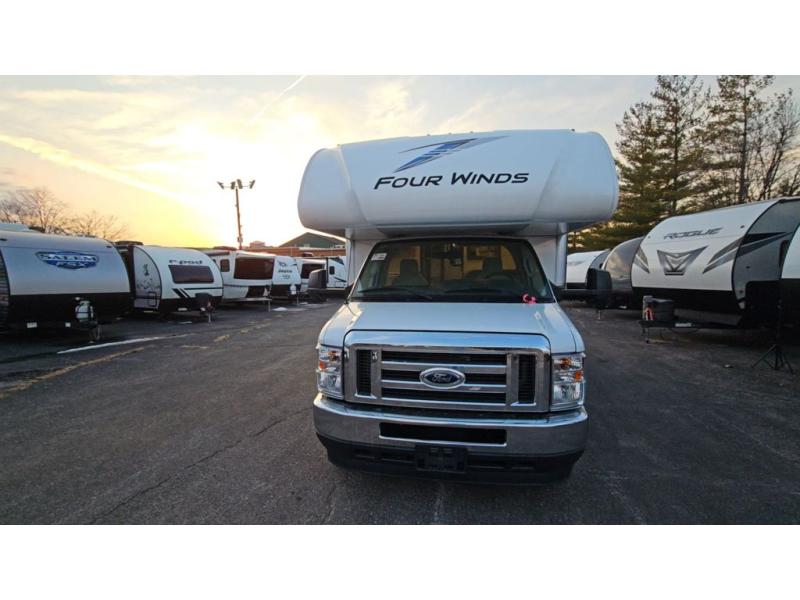 With any Four Winds Class C gas motorhome, you can travel in a trustworthy Ford E-Series chassis with 325HP, or a Chevrolet chassis with 401HP if you choose that option which is available on several models. Each is built with welded sidewall cage construction and a welded tubular aluminum roof, a one-piece fiberglass cap, and includes a slick fiberglass exterior with graphics package for style and years of enjoyment on the open road. Inside, you will enjoy the well-equipped kitchen, the spacious bathroom, the sleeping accommodations and the Winegard ConnecT 2.0 WiFi/4G/TV antenna that allows you to stay connected. With several floorplans to choose from and options to add, you will surely find one that fits your family's needs or your friend's approval. Choose today!