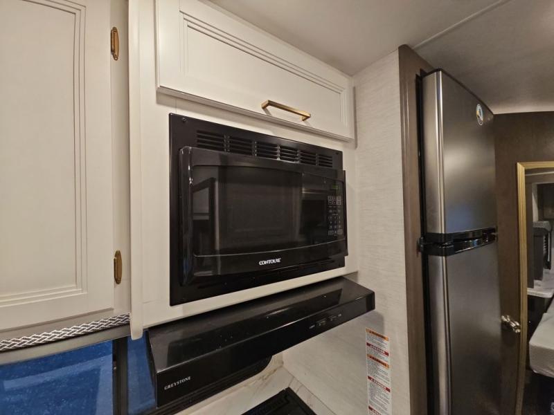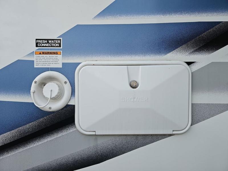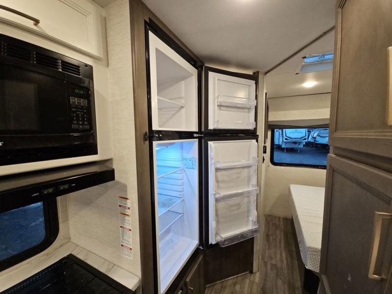 Easily head out for fun at a state park, the lake or your friend's ranch. This coach is easy to maneuver on the road or in town thanks to its compact size, yet has so many conveniences, you might not return home. The front cab over bunk is a perfect sleeping space for guests, the 39" Smart TV allows you to watch shows when you want some inside time, and the dream dinette gives you a place to dine and relax. The cook will love all the kitchen amenities at their fingertips, plus the flip-up countertop extension is super handy. The rear corner bedroom offers a queen bed slide for more floor space, a privacy curtain and a closet, plus the full bathroom is a few steps away. You can also choose to add the optional exterior 32" TV for outdoor fun!