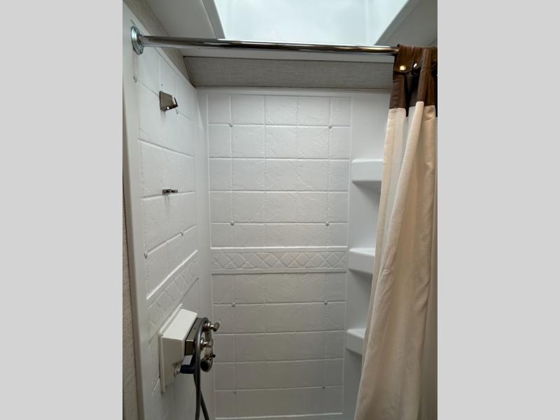 Get ready to travel for long periods of time in this coach that offers sleeping space for five when you utilize the rear corner queen bed, the cab over bunk and the dream dinette. You and your friends will enjoy staying anywhere with the views out of the windows, the full bathroom only a few steps away and the kitchen amenities to feed everyone plus some. The chef will love the galley kitchen and being able to watch the 40" TV with swivel while cooking. You might even like to add an optional exterior 32" TV to enjoy while relaxing outside under the power awning with integrated LED lighting to enjoy at night.