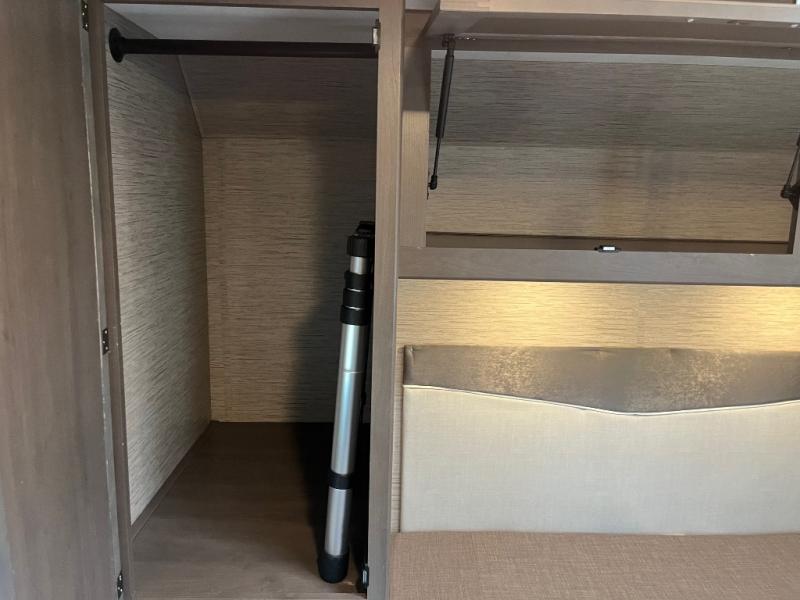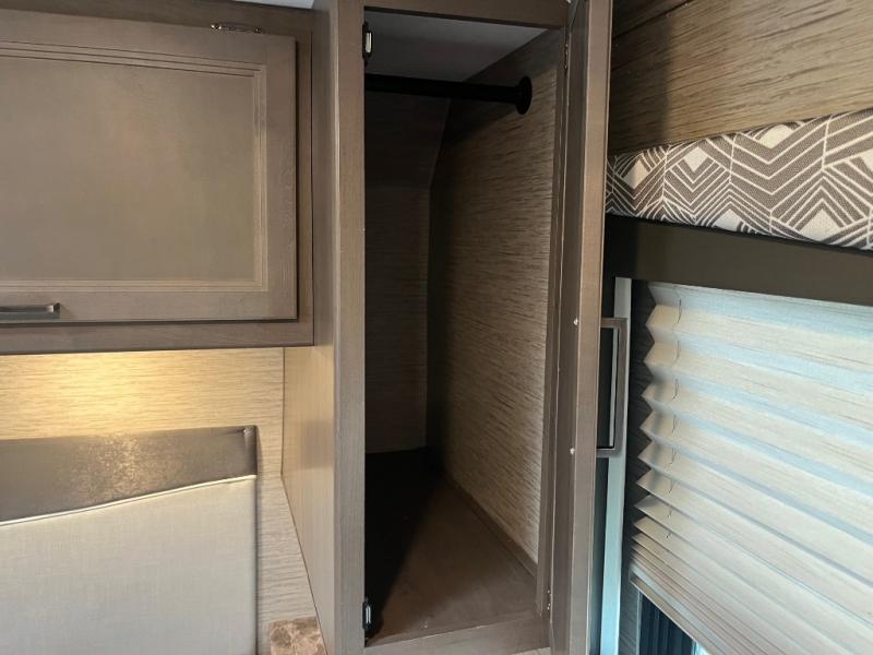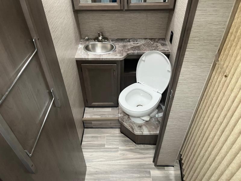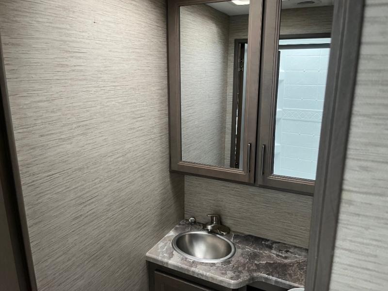 Whether you are couple or a family, this coach offers so many comforts you might never go back home! There is a rear bedroom offering a walk-around queen bed with storage on each side, and a split bathroom allowing two people to get ready at once. You'll love the living room furniture that can double as sleeping space for overnight guests, along with the cab-over bunk. There are full kitchen amenities such as a gas cooktop and microwave, plus the 12V refrigerator is next to the mid-coach entry allowing you to grab a beverage on your way out to relax under the power awning with integrated LED lighting. There is more to enjoy like the 39" Smart TV with swivel for the perfect view of the game, the dream dinette for dining and working, the sofa to relax on, and the cab over bunk to take a nap.