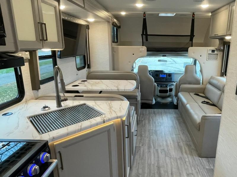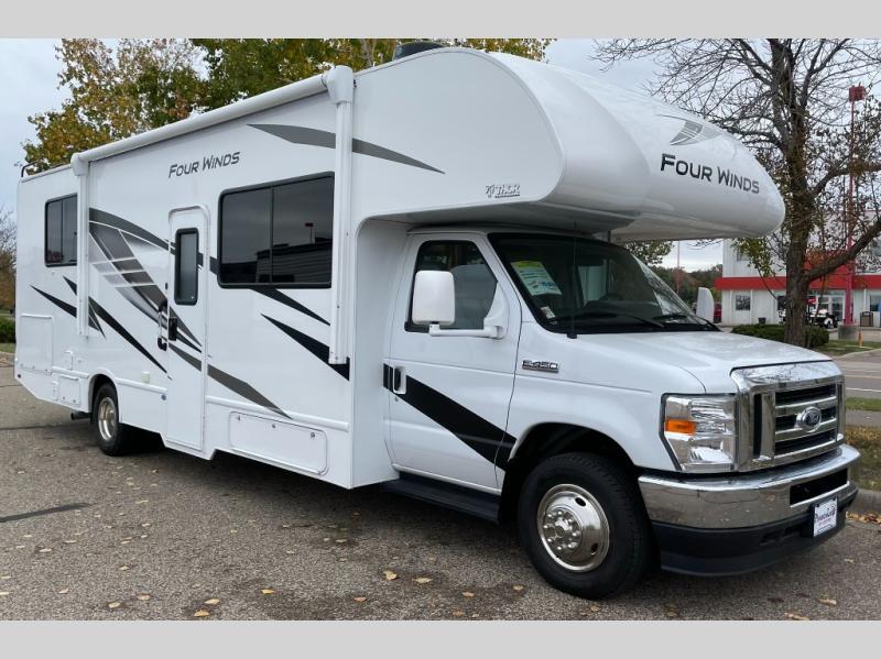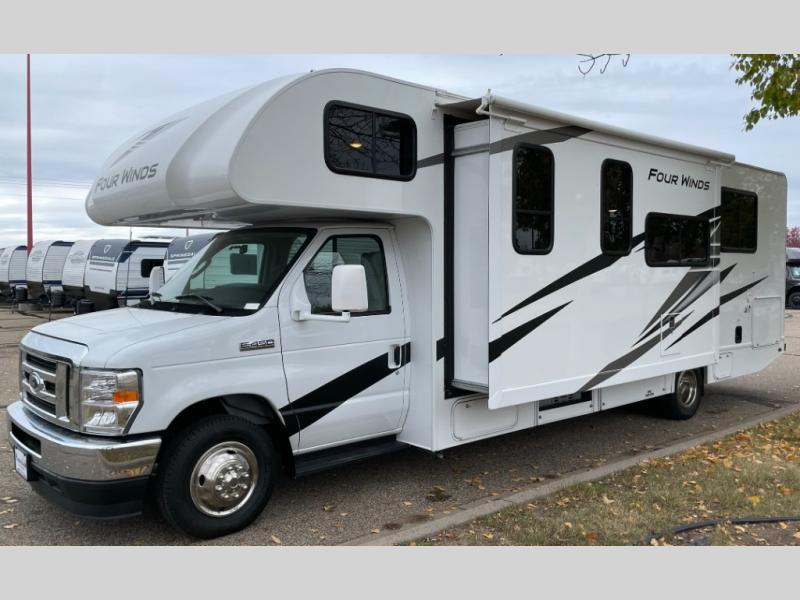With any Four Winds Class C gas motorhome, you can travel in a trustworthy Ford E-Series chassis with 325HP. Each is built with welded sidewall cage construction and a welded tubular aluminum roof, a one-piece fiberglass cap, and includes a slick fiberglass exterior with graphics package for style and years of enjoyment on the open road. Inside, you will enjoy the well-equipped kitchen, the spacious bathroom, the sleeping accommodations and the Winegard ConnecT 2.0 WiFi/4G/TV antenna that allows you to stay connected. With several floorplans to choose from and options to add, you will surely find one that fits your family's needs or your friend's approval. Choose today!