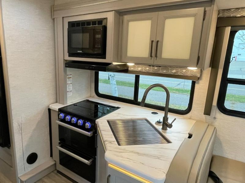 Perfect for a couple or a growing family, this coach will allow you to enjoy inside comforts and outdoor scenery where ever you drive and park! You will have great views out of the many windows when you are indoors, and the power awning offers an outdoor living area protected by the elements when you want some fresh air. The cook will love the large single bowl stainless steel sink with a single handle faucet with a pull-down sprayer when cleaning fruits and veggies, the gas cooktop and microwave when making meals, as well as the 12V refrigerator to hold all the cold items. The slide out creates even more floor space, the furniture offers a place to dine and visit as well as sleep, and the private bedroom with a full bathroom just steps away will complete the deal!