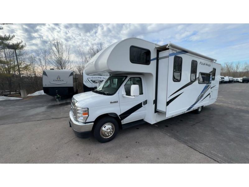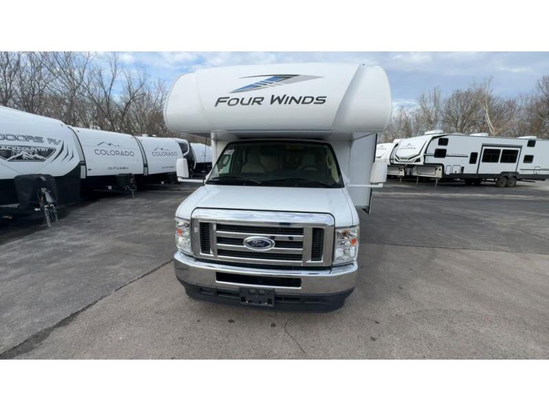 With any Four Winds Class C gas motorhome, you can travel in a trustworthy Ford E-Series chassis with 325HP. Each is built with welded sidewall cage construction and a welded tubular aluminum roof, a one-piece fiberglass cap, and includes a slick fiberglass exterior with graphics package for style and years of enjoyment on the open road. Inside, you will enjoy the well-equipped kitchen, the spacious bathroom, the sleeping accommodations and the Winegard ConnecT 2.0 WiFi/4G/TV antenna that allows you to stay connected. With several floorplans to choose from and options to add, you will surely find one that fits your family's needs or your friend's approval. Choose today!