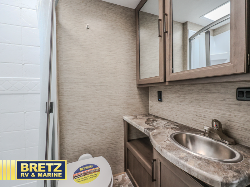 Perfect for a couple or a growing family, this coach will allow you to enjoy inside comforts and outdoor scenery where ever you drive and park! You will have great views out of the many windows when you are indoors, and the power awning offers an outdoor living area protected by the elements when you want some fresh air. The cook will love the large single bowl stainless steel sink with a single handle faucet with a pull-down sprayer when cleaning fruits and veggies, the gas cooktop and microwave when making meals, as well as the 12V refrigerator to hold all the cold items. The slide out creates even more floor space, the furniture offers a place to dine and visit as well as sleep, and the private bedroom with a full bathroom just steps away will complete the deal!