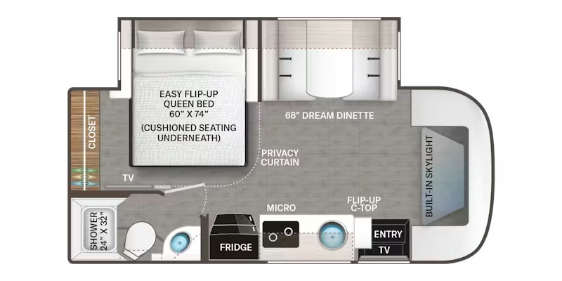 Outside, you’ll enjoy an electric awning with LED lighting, generous storage compartments, and an exterior TV for entertainment under the stars. Designed for travelers who want luxury without bulk, the 2024 Gemini 23TW packs convenience, comfort, and capability into one impressively sized motorhome.
