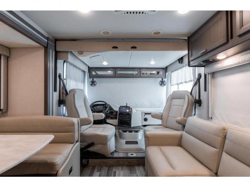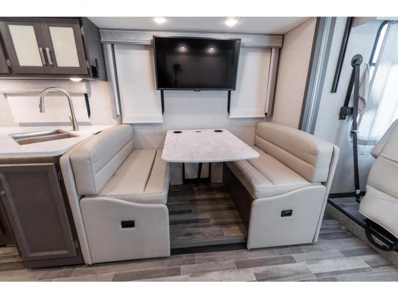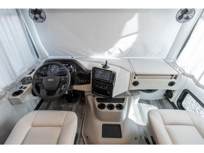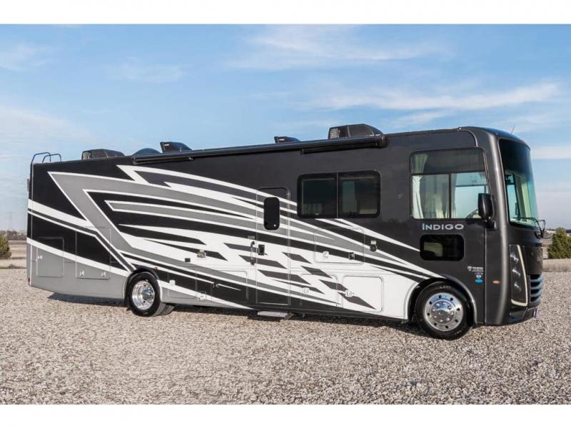 There's something for everyone in the Thor Motor Coach Indigo Class A gas motorhome! Built on the Ford F53 chassis, with family-friendly designs and features that will make your life easier, these are worth considering. Residential vinyl flooring throughout is comfortable and easy to care for, while the seamless countertops make your kitchen look great. Multiple TVs mean there's no fighting over what to watch, and a high-tech driver console adds Bluetooth®, Android Auto™, Apple CarPlay® and Sirius/XM® Radio via a 10-inch touchscreen so you can listen to whatever music you like. The booth dinette has a wireless phone charger with integrated USB plug for charging convenience, or use the dash workstation which has 100-volt and 12-volt outlets.