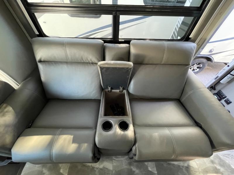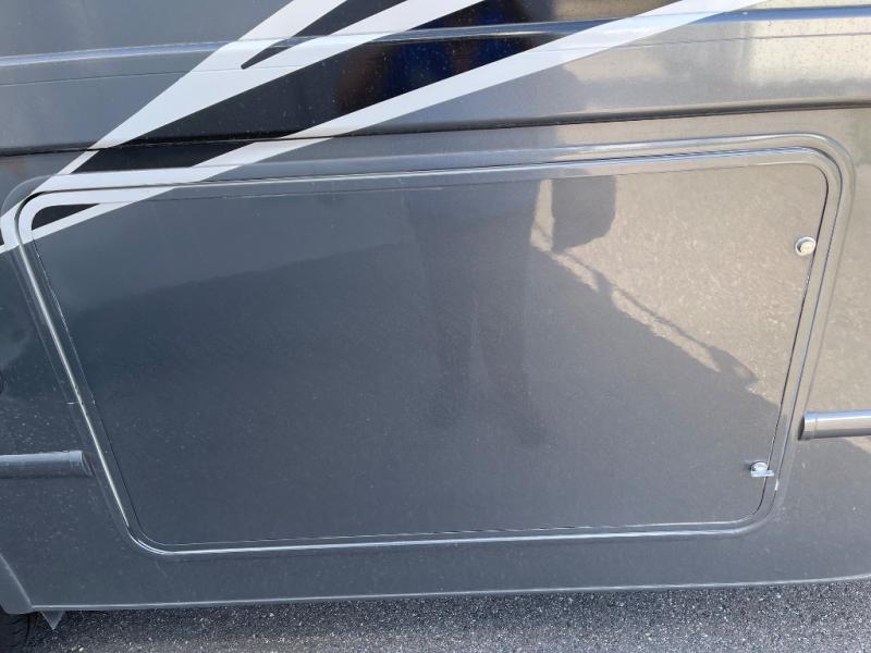 With any Quantum Class C gas motorhome by Thor Motor Coach, you will find welded tubular aluminum roof and sidewall cage construction and a fiberglass front cap with a skylight and power shade for added privacy. The interior offers decorative glass inserts in the kitchen overhead cabinet doors, kitchen accent countertop lights for style, and full extension metal ball-bearing drawer guides. The driver is sure to appreciate the 10-inch touchscreen dash radio with Google Android Auto-Apple CarPlay with a back-up monitor and the SmoothTECH ride suspension by Mor-Ryde for a smooth driving experience. A 4.0kW gas generator and 30-amp shoreline power cord will provide the power you need for your adventures, and the 100-watt solar charging system with a power controller will provide off-grid capabilities.