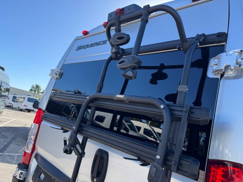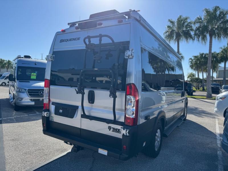 Each one of these Thor Motor Coach Sequence Class B gas motorhomes are built with a RAM Promaster 3500 XT window van chassis and powered by a fuel-efficient V-6 engine for an easy drive, economical explorer van! They are Thule equipped with a roof ladder to view your destination in a different perspective, an optional bike rack for two adult bikes, and a lateral arm patio awning with integrated LED lighting. Modern living and convenience is what you will find throughout the interiors with a premium touchscreen dash radio, Apple Car Play and Android Auto that connects your favorite music and podcasts through USB or Bluetooth, and Euro-style cabinetry. Plus, there is residential vinyl flooring so you can bring your furry friend along and not worry about messes becoming stains!