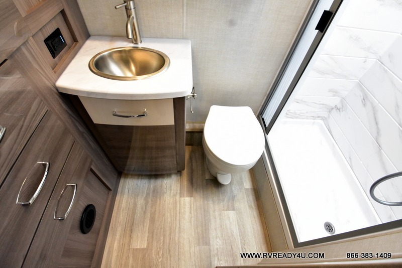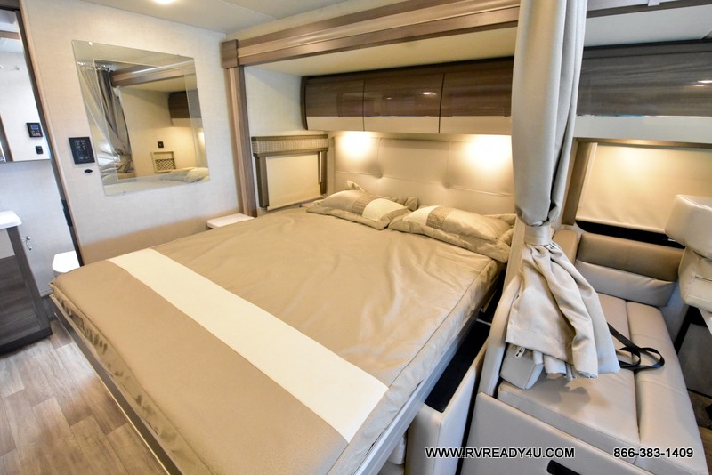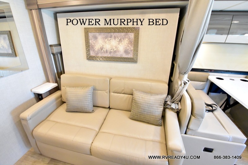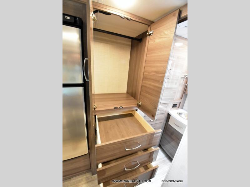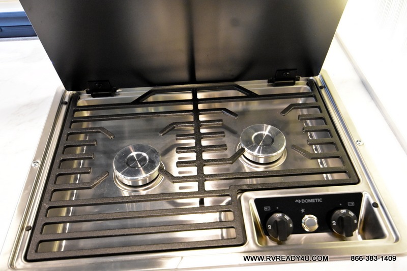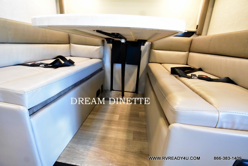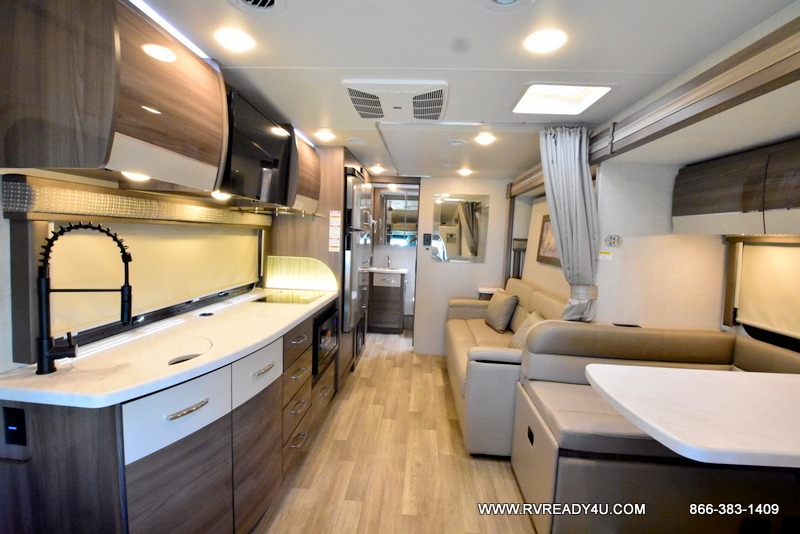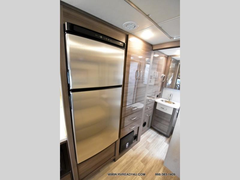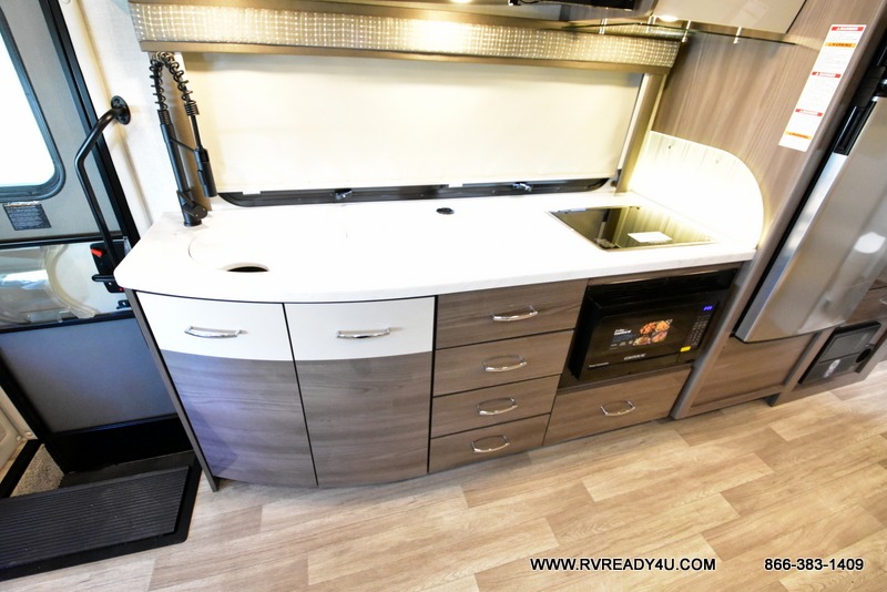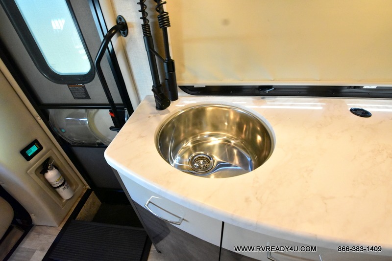 This Tiburon Sprinter Class C diesel motorhome has everything you need to vacation comfortably! During the day you will find a 67" sofa and 70" Dream Dinette with footrests to relax on, but once night falls, you can transition the sofa into a 60" x 74" Murphy bed which you can use to sleep soundly. When you wake up, it will be easy to head over to the kitchen to prepare something to eat. You can use the two-burner gas cooktop and the convection microwave oven with an air fryer to prepare a hot meal, or you can just grab some cereal from the pantry and some milk from the refrigerator for a fast breakfast.