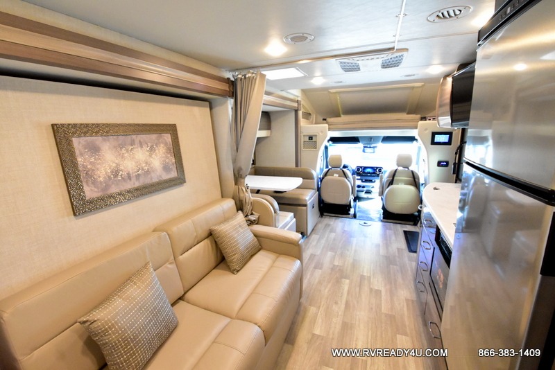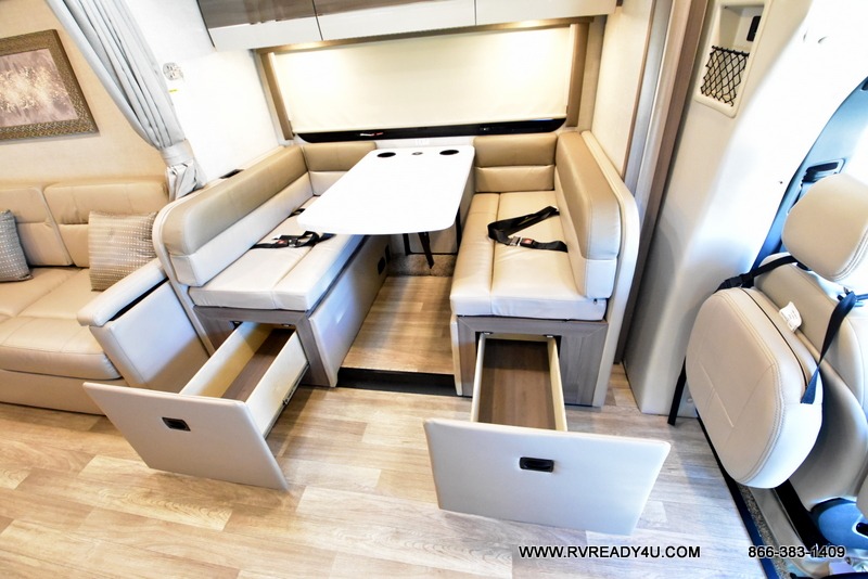 You will be well on your way to unforgettable journeys when you purchase the Thor Motor Coach Tiburon Sprinter Class C diesel motorhome and add it to your line-up! What makes the Tiburon Sprinter so special are the elegant and stunning interiors combined with the eye-catching exterior and powerful Mercedes-Benz Sprinter chassis with a 2.0L l-4 engine and 211HP. You will stay safe as you travel because the Mercedes-Benz safety package includes active braking assist, attention assist, active lane keeping assist, a wet wiper system, and a distance regulator distronic plus. As you tackle each adventure, you'll enjoy the cockpit features that allow you to enjoy traveling, like the Mercedes-Benz multimedia dash radio with Bluetooth®, navigation, and SiriusXM® and the rearview mirror with back-up system. And don't overlook the electrical and plumbing features! You will be impressed by the Winegard® ConnecT™ 2.0 Wi-Fi/4G/TV antenna, tankless water heater, and 200W solar charging system with power controller.