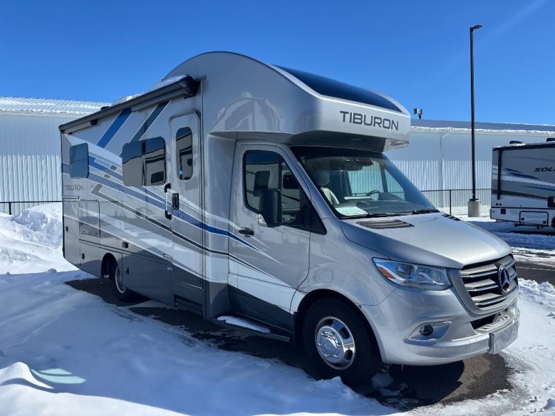 You will be well on your way to unforgettable journeys when you purchase the Thor Motor Coach Tiburon Sprinter Class C diesel motorhome and add it to your line-up! What makes the Tiburon Sprinter so special are the elegant and stunning interiors combined with the eye-catching exterior and powerful Mercedes-Benz Sprinter chassis with a 2.0L l-4 engine and 211HP. You will stay safe as you travel because the Mercedes-Benz safety package includes active braking assist, attention assist, active lane keeping assist, a wet wiper system, and a distance regulator distronic plus. As you tackle each adventure, you'll enjoy the cockpit features that allow you to enjoy traveling, like the Mercedes-Benz multimedia dash radio with Bluetooth®, navigation, and SiriusXM® and the rearview mirror with back-up system. And don't overlook the electrical and plumbing features! You will be impressed by the Winegard® ConnecT™ 2.0 Wi-Fi/4G/TV antenna, tankless water heater, and 200W solar charging system with power controller.