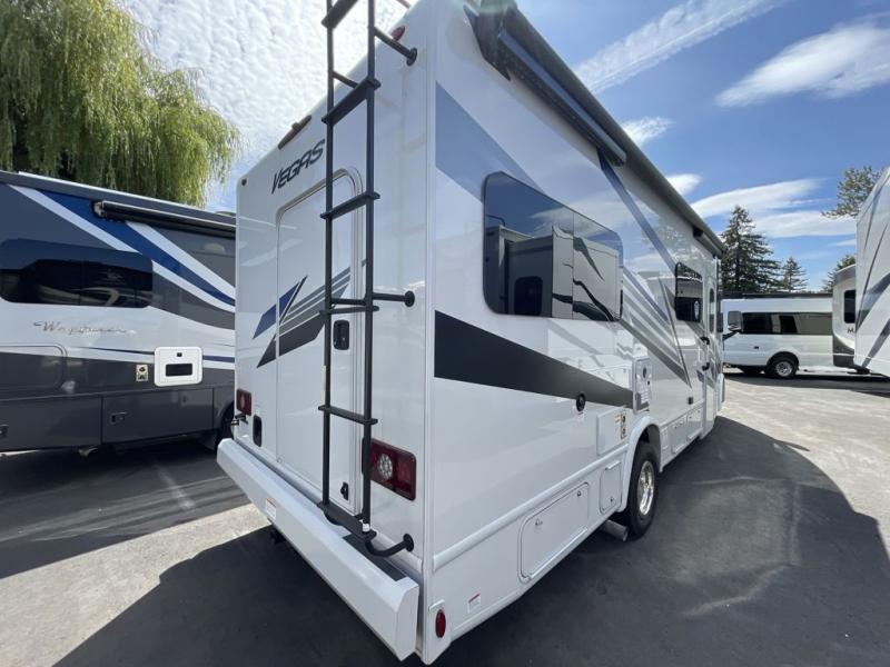 Enjoy easy travel and flexible living in this used 2024 Thor Motor Coach Vegas 25.7. Designed as a compact Class A on a Ford E-Series chassis, this motorhome provides all the comforts of home while staying nimble enough for weekend escapes, scenic drives, or urban adventures. With versatile sleeping arrangements, a rear corner bathroom, and thoughtful technology features, the Vegas 25.7 is ideal for couples, small families, or solo travelers seeking convenience and style on the road.