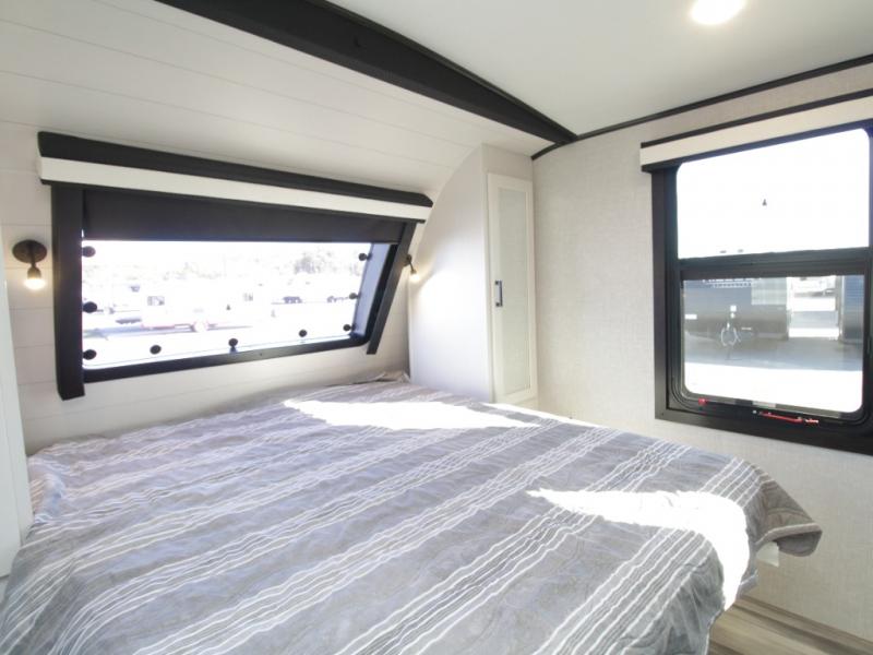 The Jayco White Hawk series stands out for its lightweight yet durable construction. Each model is built with a Magnum Truss Roof System that can handle 50% more weight than competitors, plus Stronghold VBL™ lamination for maximum strength and reduced weight. Standard Goodyear tires, frameless tinted windows, and a modern graphics package complete the sleek exterior.