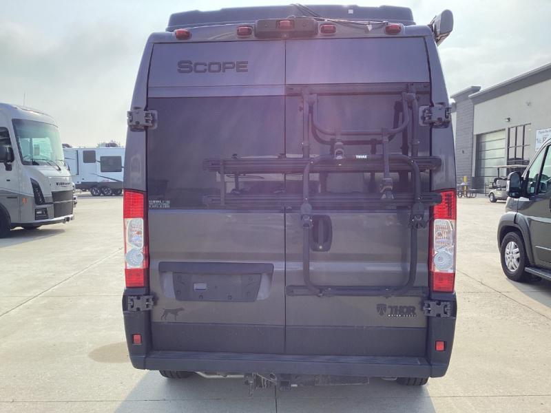 Each one of these Thor Motor Coach Scope Class B gas motorhomes are built for those who want to explore the great outdoors in comfort! They are front wheel drive and constructed with a RAM Promaster 1500 XT chassis, plus a 3,500 lb. trailer hitch with 4-pin connector so you can haul even more items with you. The side steps make it easier to enter and exit the units, and the entryway screen door is an added bonus. The single door 12V electric refrigerator is powered directly from the coach batteries which are charged by the quiet Onan® RV QG 2800 gas generator. You will also enjoy the residential vinyl flooring, premium window privacy roller shades, pressed countertops in the kitchen, and Euro-style upper cabinet doors for added comfort!