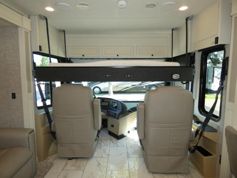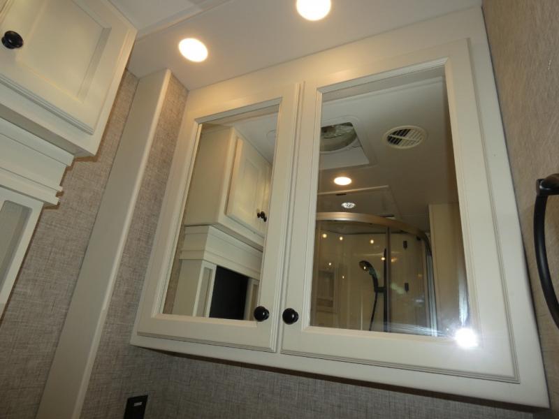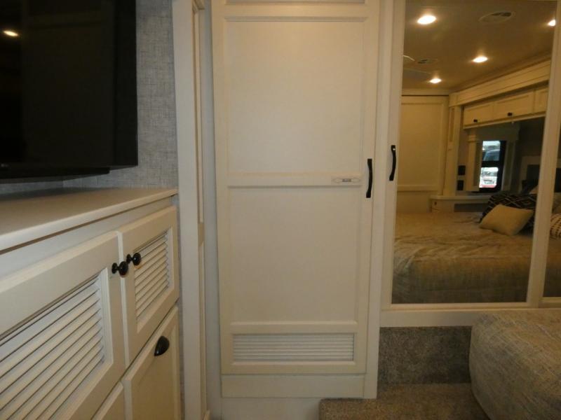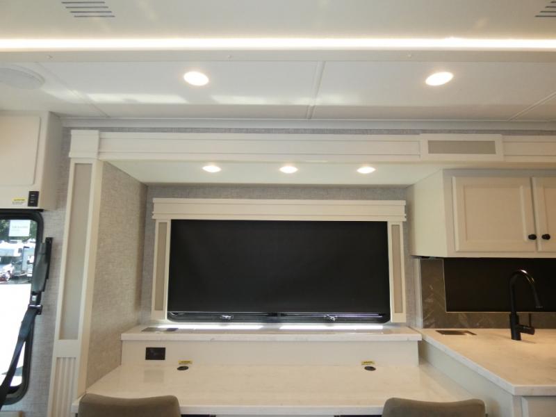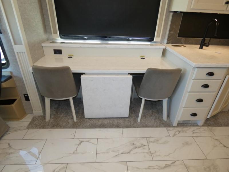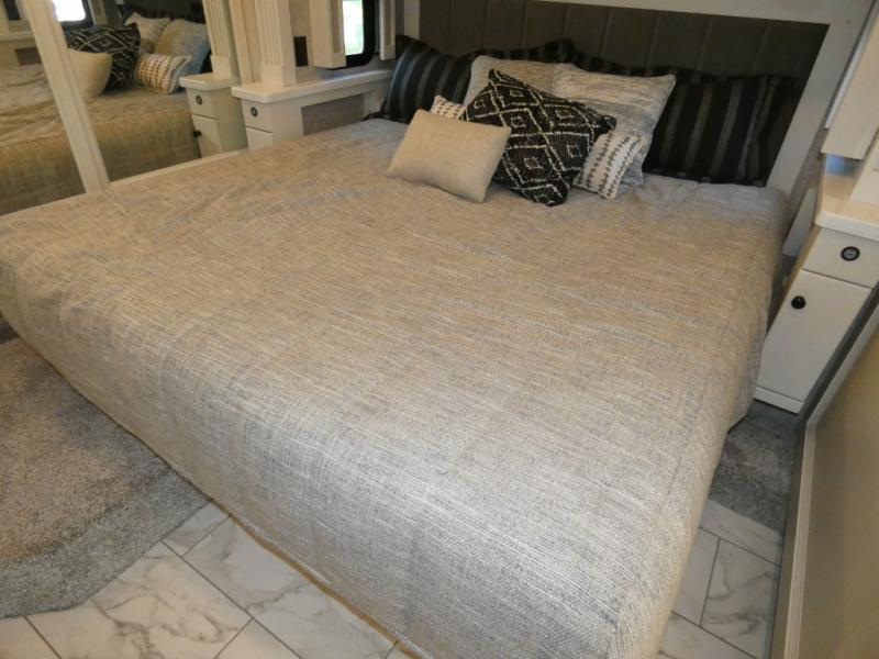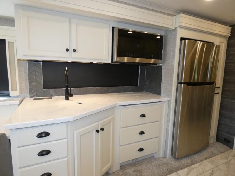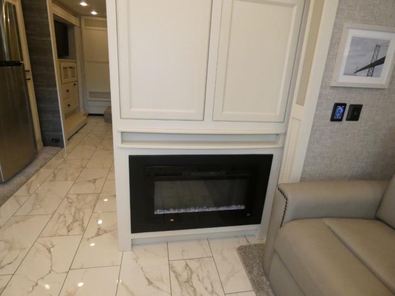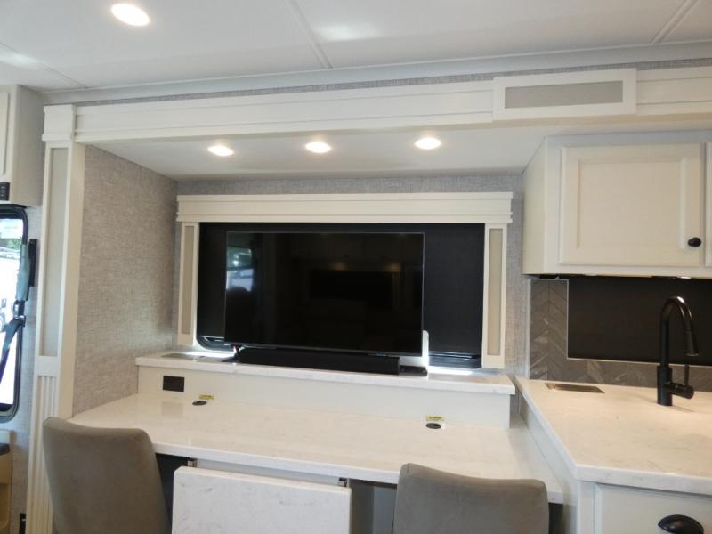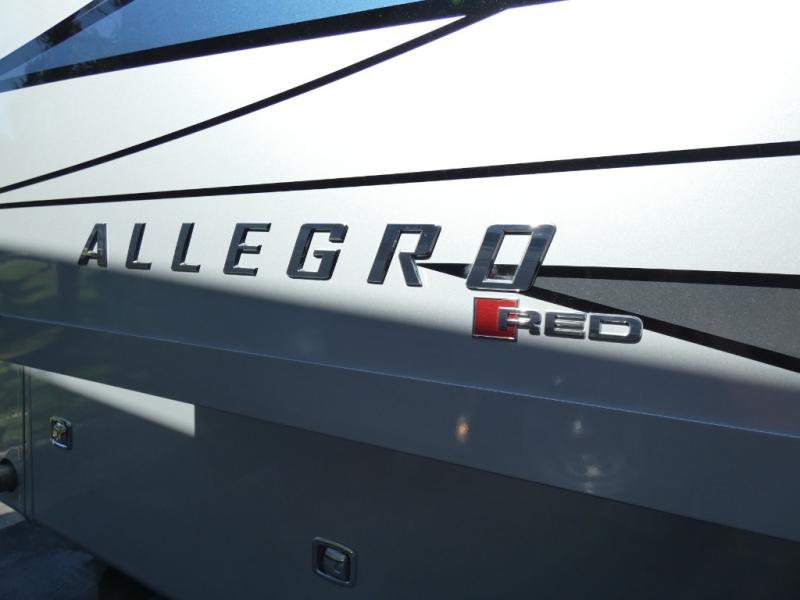 There are many, many reasons you'll instantly fall in love with this Allegro RED Class A diesel motorhome! You have three TVs including an exterior one to keep everyone entertained, and the kitchen is filled with tons of tools to create delicious meals, like a 1.7 cu. ft. smart convection microwave with air fry, 20 cu. ft. stainless steel residential refrigerator with top freezer, pantry, double-bowl sink, and panoramic galley window. You'll also be quite impressed with the full bathroom that has a one-piece fiberglass shower, roof vent fan, solid-surface vanity top, and a skylight and LED light in the shower.