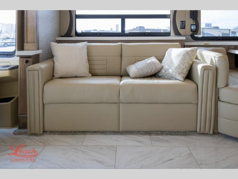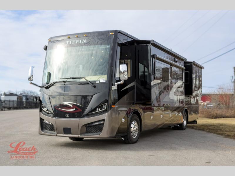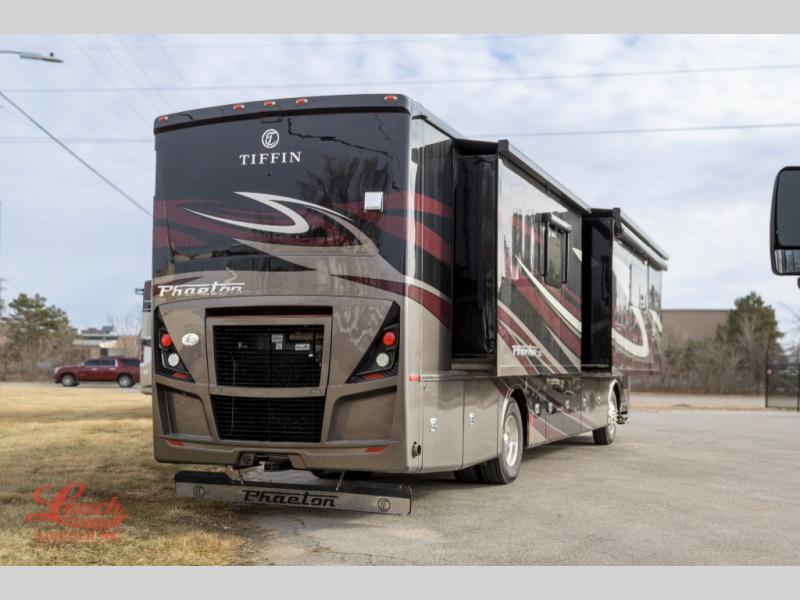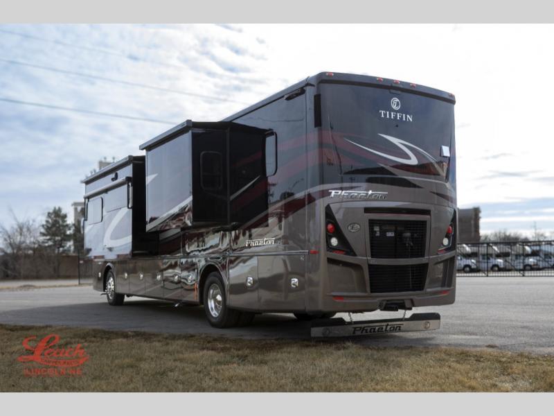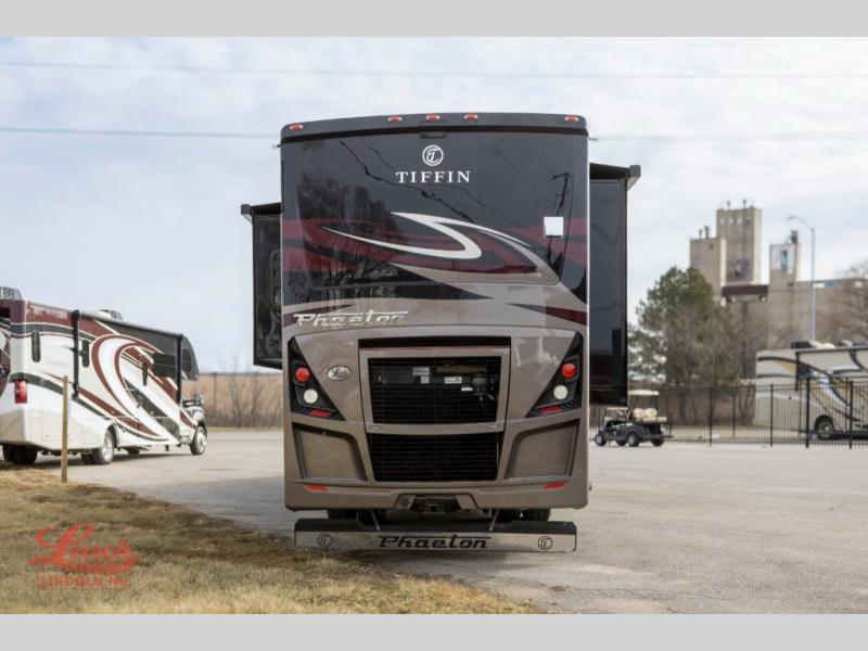 Each one of these Tiffin Motorhomes Phaeton Class A diesel motorhomes offer high-end elegance at every turn! A PowerGlide chassis or Freightliner chassis, depending on the model you choose, will give you a smooth ride for every mile, and each coach is now standard with a Cummins L9 450 HP engine to power your journeys. There is a 10.0 kW Onan Quiet Diesel generator, three 15k BTU A/C units, and a Firefly integrations Eclipse module to keep you connected wherever you go. Outside, you'll appreciate the custom rock guard to protect your unit, along with full-body paint with four layers of clear coat and high-performance protection film on the front cap and select areas. A Girard power awning with LED lights also comes standard plus a fiberglass reinforced plastic basement floor, an exterior TV, and more! New features include a redesigned ceiling treatments, new wood colors and decors, a Starlink Pro options, and a raised rail chassis on all models.