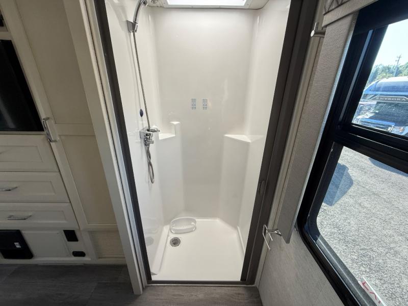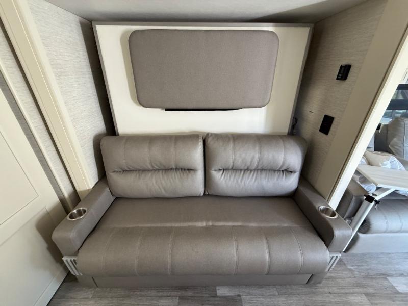 Travel with your favorite person, your family, or a some friends to see nature along the highways, up close and where ever the road takes you! You will find sleeping space for five with the bunk over the cab, the booth dinette, and the versatile queen Murphy bed and sofa combo! You can watch the 32" TV while the cook makes dinner using the convection microwave or cooktop, and the 12V 6.5 cu. ft. refrigerator can hold the cold items. The rear full bathroom gives you privacy and the sliding door saves space. You might like to add a few options to customize your coach such as optional theater seating, or a tri-fold sofa in place of the dinette, a central vacuum system, an overhead entertainment center in place of the bunk, and/or an exterior TV to enjoy under the awning.