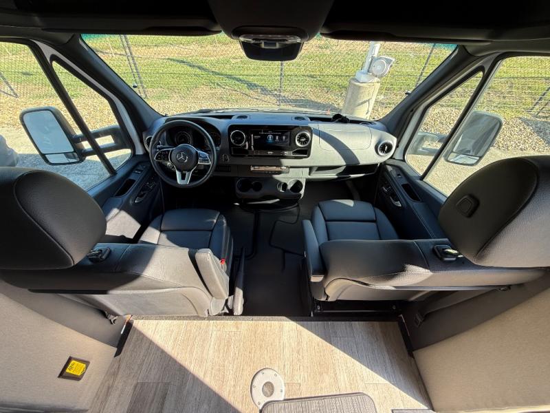 With any Wayfarer Class C diesel coach by Tiffin Motorhomes you will enjoy luxury features both inside and out. There is a new front and rear cap design with seamless gel-coated fiberglass plus full-body paint with two layers of clear coat for added protection. The Mercedes-Benz 3500XD dual wheel cutaway chassis provides a strong foundation, and the 3.0L V6 turbo 188 HP diesel engine will keep you going adventure after adventure! You will love the drive just as much as the destination with black leather adjustable captain's seats that are also heated, intelligent navigation, and a Mercedes-Benz MBUX multimedia system with a 10.25" touchscreen. Wherever you decide to roam, you will be met with interior comforts that include handcrafted overhead cabinetry, solar and privacy shades, solid surface galley countertops and task lighting, and a wardrobe in the bedroom to keep your space tidy. And don't overlook the exterior with motion-sensor lights in the cargo bay, a Girard side-mounted patio awning with integrated LED lighting and built-in speakers, lockable handles on the compartment doors, and so much more!