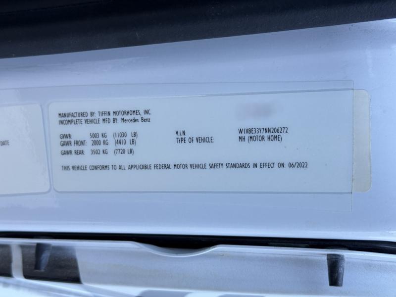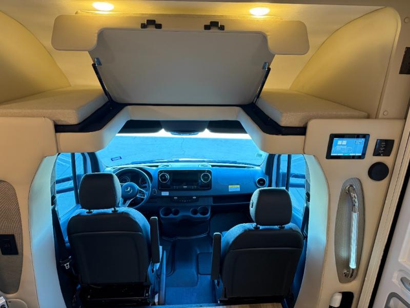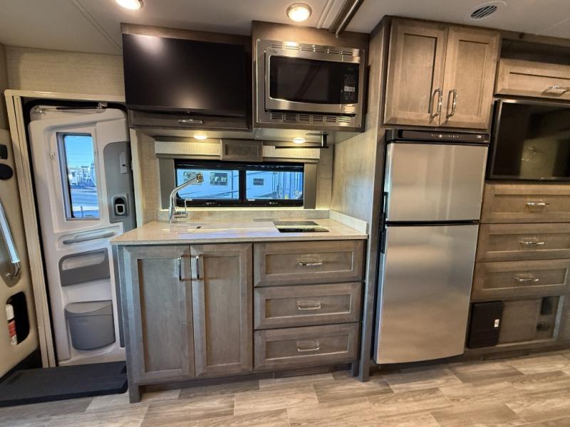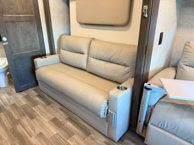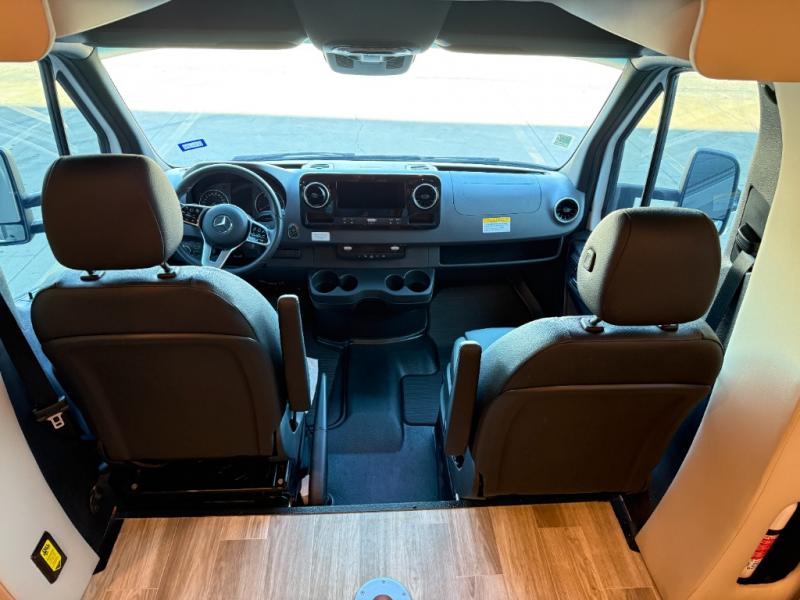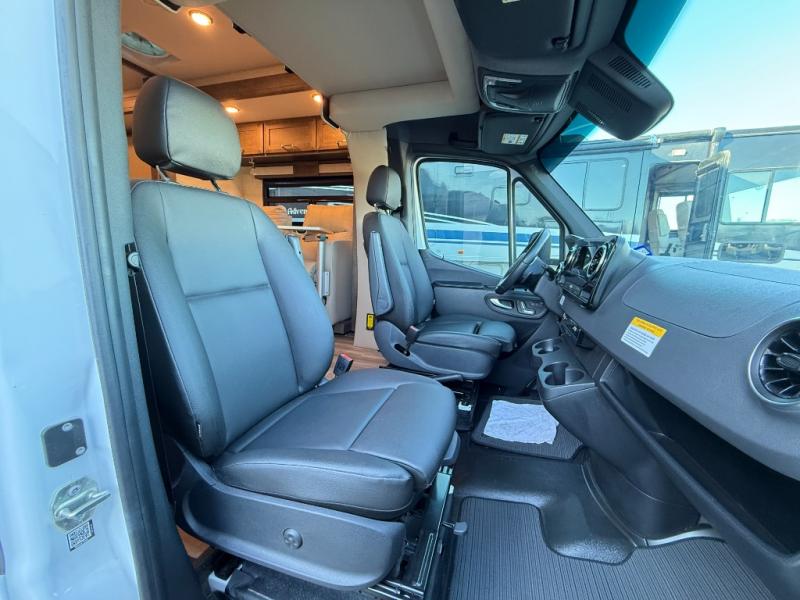 With any Wayfarer Class C diesel coach by Tiffin Motorhomes you will enjoy luxury features both inside and out. There is a new front and rear cap design with seamless gel-coated fiberglass plus full-body paint with two layers of clear coat for added protection. The Mercedes-Benz 3500XD dual wheel cutaway chassis provides a strong foundation, and the 3.0L V6 turbo 188 HP diesel engine will keep you going adventure after adventure! You will love the drive just as much as the destination with black leather adjustable captain's seats that are also heated, intelligent navigation, and a Mercedes-Benz MBUX multimedia system with a 10.25" touchscreen. Wherever you decide to roam, you will be met with interior comforts that include handcrafted overhead cabinetry, solar and privacy shades, solid surface galley countertops and task lighting, and a wardrobe in the bedroom to keep your space tidy. And don't overlook the exterior with motion-sensor lights in the cargo bay, a Girard side-mounted patio awning with integrated LED lighting and built-in speakers, lockable handles on the compartment doors, and so much more!