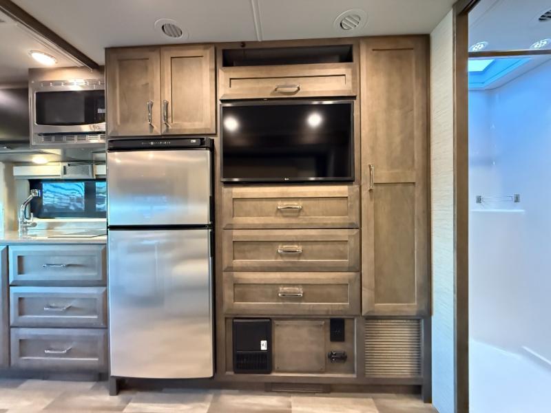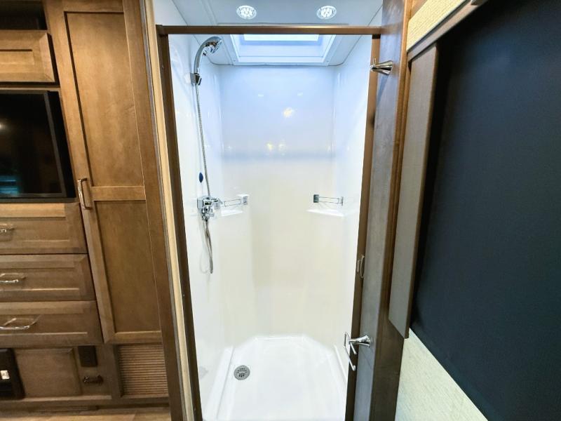 Travel with your favorite person, your family, or a some friends to see nature along the highways, up close and where ever the road takes you! You will find sleeping space for five with the bunk over the cab, the booth dinette, and the versatile queen Murphy bed and sofa combo! You can watch the 32" TV while the cook makes dinner using the convection microwave or cooktop, and the 12V 6.5 cu. ft. refrigerator can hold the cold items. The rear full bathroom gives you privacy and the sliding door saves space. You might like to add a few options to customize your coach such as optional theater seating, or a tri-fold sofa in place of the dinette, a central vacuum system, an overhead entertainment center in place of the bunk, and/or an exterior TV to enjoy under the awning.