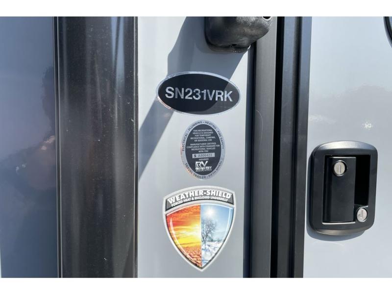 With an exterior length of around 26 feet 11 inches and a dry weight around 4,800 pounds, the Sonic 231VRK remains a lightweight travel trailer that many trucks and SUVs can tow comfortably while still offering generous interior space.