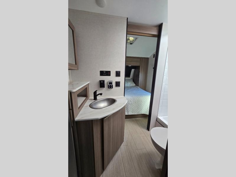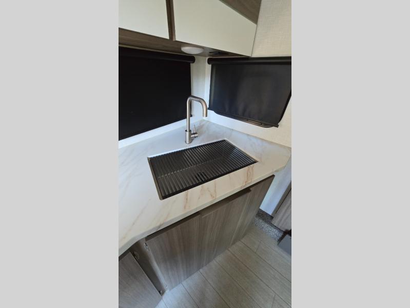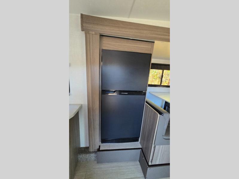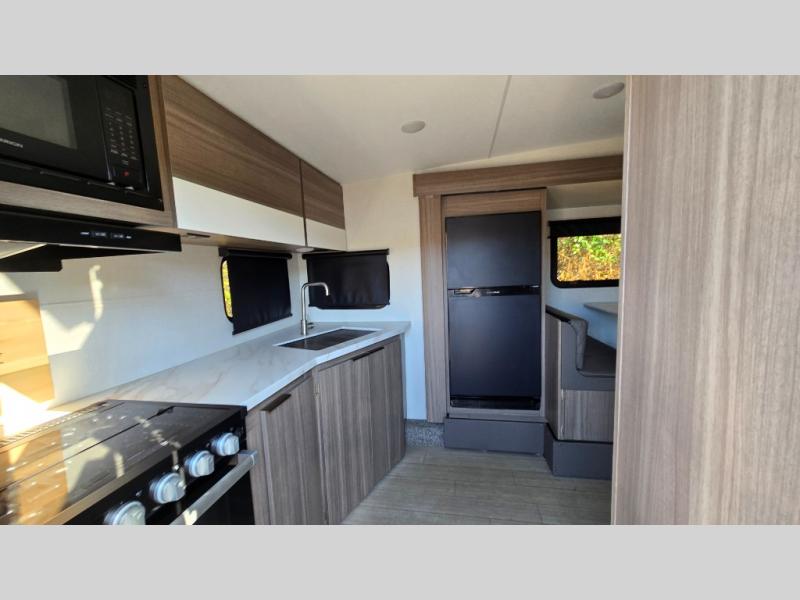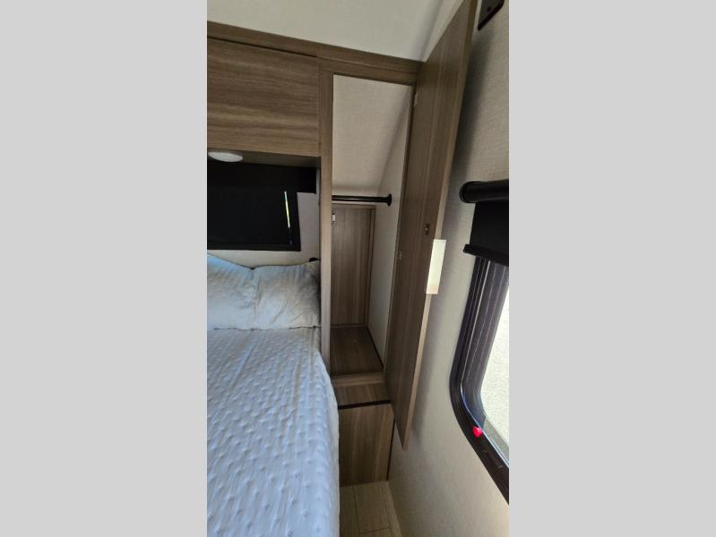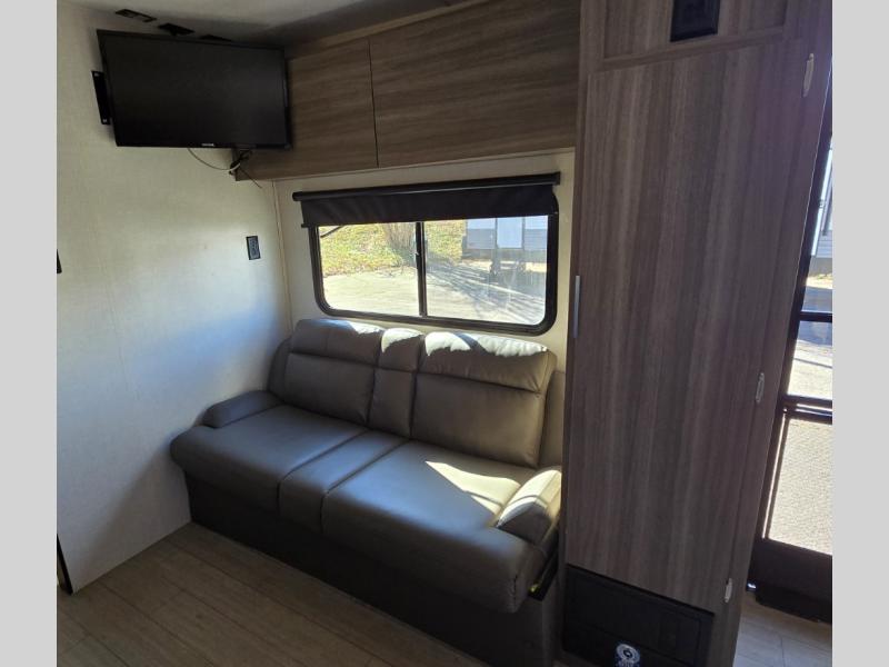Looking to hike the trails, fish the lake, cook indoors, and/or relax while visiting with other RVers? This Sonic offers the perfect home-base to accomplish all of that plus some! Beginning with the rear kitchen, the cook will love the counter space to prepare and serve meals, and it provides an easy way to grab your food as you head outside to relax under the 17' power awning when dining outdoors. The single slide out provides more interior walking around space, and you can stretch your legs out while enjoying the jiffy sofa or the 65" x 48" booth dinette. The convenient walk-through bathroom offers easy access while in the main area as well as the front bedroom which includes an RV queen bed, StorMore bedside nightstands with a 110V outlet and USB charging, plus wardrobes. And, you can store your outdoor gear such as fishing poles, camping chairs and such in the exterior pass-through storage that includes a motion-activated light.
