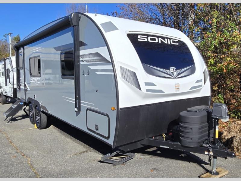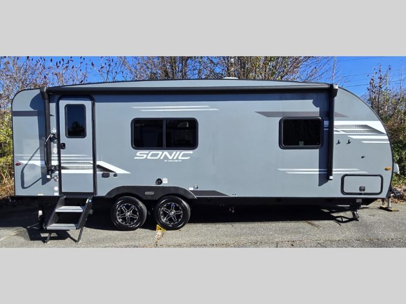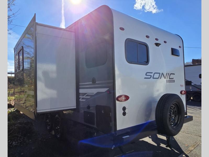 With any Sonic travel trailer by Venture RV, you begin with Next Generation in RV frame technology with the NXG Huck-bolt frame, AZDEL Onboard composite panels, tongue and groove plywood floor decking, radiant foil bubble insulation-wrapped tanks, 360-degree residential fiberglass insulation and radiant foil insulation, plus a forced-air heated and enclosed underbelly which is part of the Weather-Shield package. There is a Highway Package that comes mandatory, and the Discovery Package 1.4 provides a motion light in the bathroom, a dish drying sink cover, and the Venture LevelMate Pro, a power tongue jack, and WIFI prep to mention a few features. Get ready for comfort and style in a Sonic ultra-lightweight, tandem-axle travel trailer of your choice!