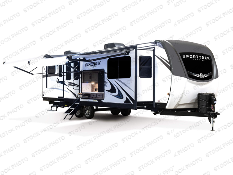 An elegant design and new features come with every one of these Venture RV SportTrek Touring Edition travel trailers! The NXG Huck bolt frame holds these units together and a walkable roof covers them. Heads will turn down the highway and at the campsite with an upgraded graphics package and a painted fiberglass front cap with integrated LED light. The exterior pass-through storage area has slam latch baggage doors with magnetic catches so you don't have to worry about them closing on you and a motion activated light to see your items clearly even at night. Luxury abounds throughout these units, especially with the mandatory Interior Luxury package which comes with solid surface kitchen countertops, designer valances with fabric nightshades, two 30" frameless fireplaces, and Beauflor wood plank flooring that is easy to clean. Come find your favorite model today!