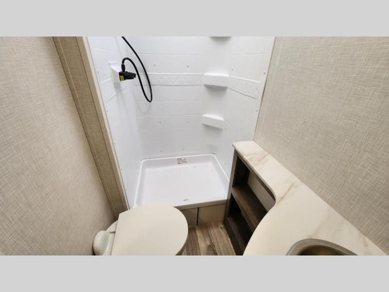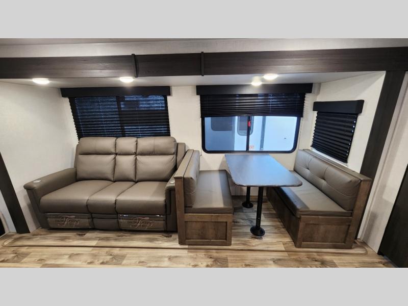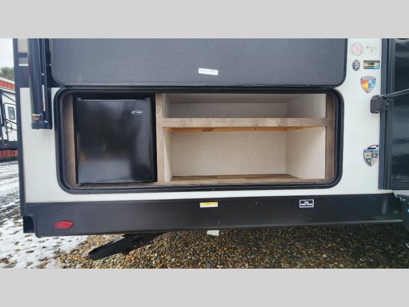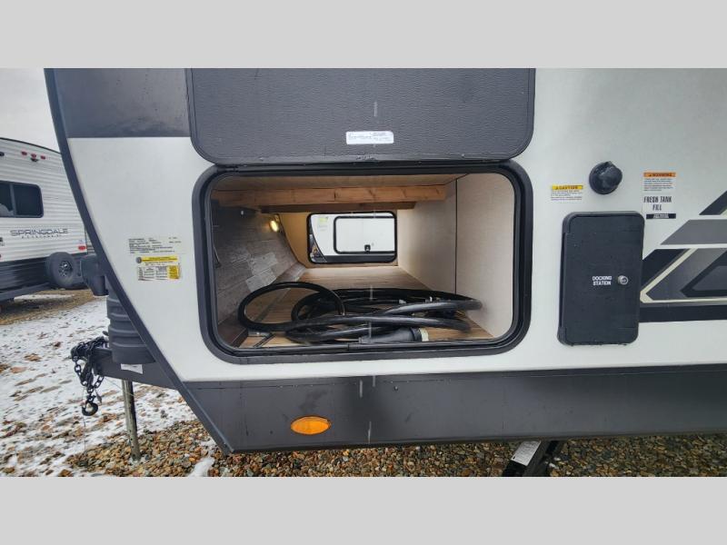 - Adventure-ready exterior. Durable build, outdoor entertainment potential, and user-friendly utility systems make this trailer road-tested and campground-approved.