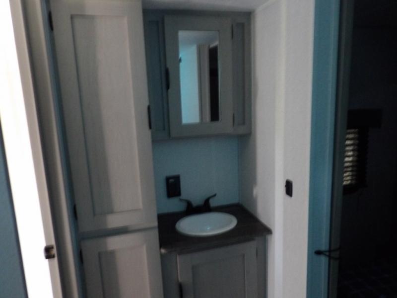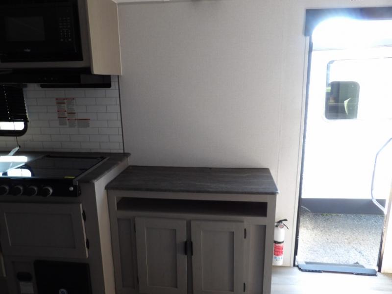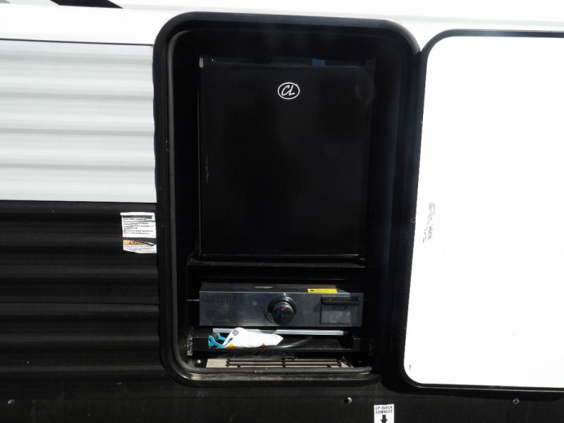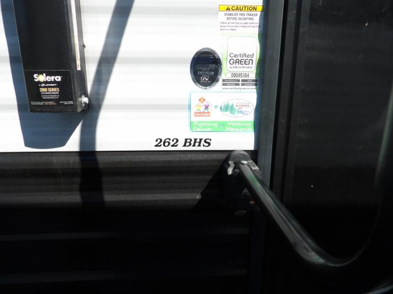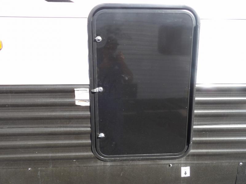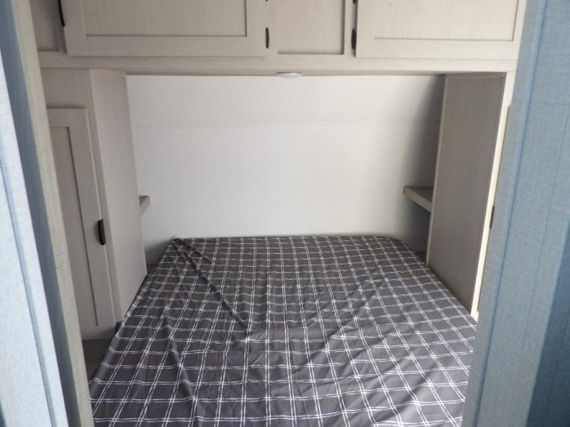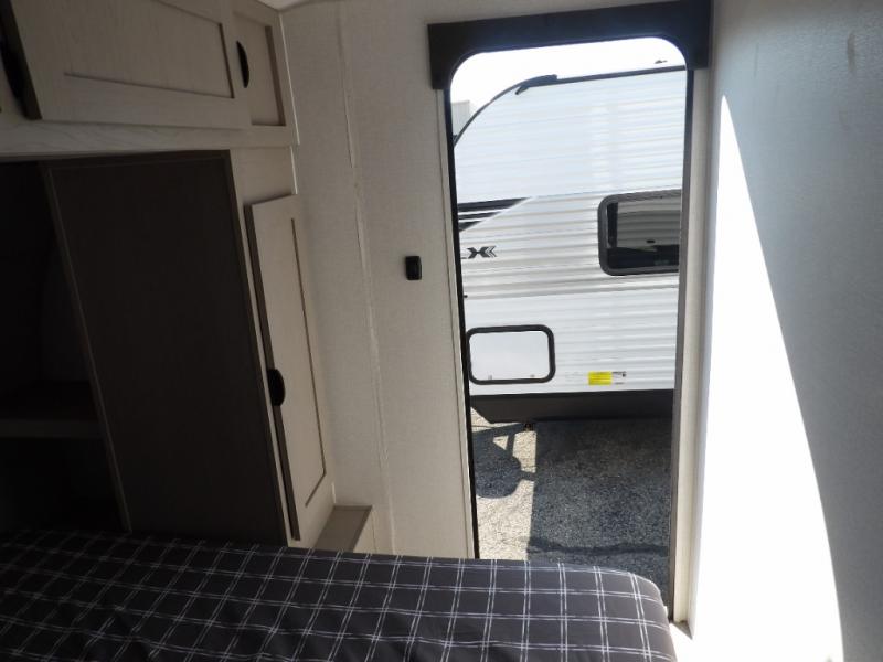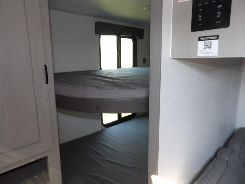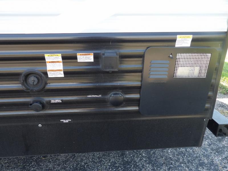 Start planning your trip and loading up your clothes for a fun family or friend get-away with this trailer in tow! The kids or your guests will pack the wardrobe by the double bunk beds in the rear which include steps leading up to them, and you can place your clothes in the wardrobes in the front private bedroom which includes the second entry/exit door for convenience. The main kitchen and living area is spacious with a slide out, and everyone can gather around the U-shaped dinette and sofa to visit, eat, and plan their day. The outside camp kitchen allows you to make meals easily outdoors, and you'll find a three burner range with an oven indoors to bake a casserole for dinner. The exterior also offers an outside shower to wash off the dirt from the day, and a 16' power awning to relax in the shade!