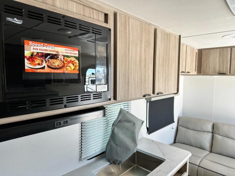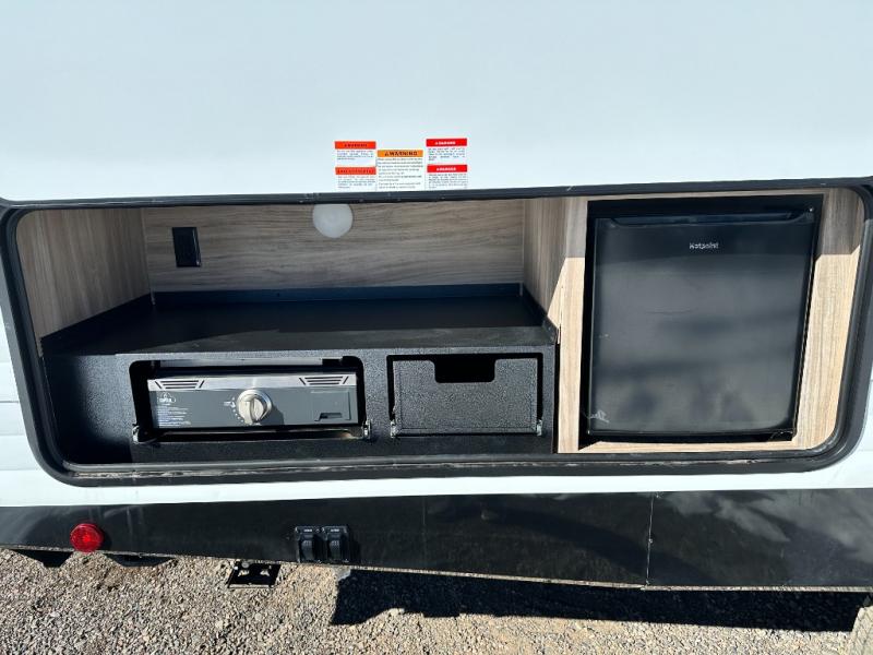 Your family of eight will enjoy camping in this Access camper. You will have the choice of cooking both inside and out with the accessible outdoor kitchen featuring a pull-out griddle, 1.6 cu. ft. refrigerator and handy pull-out 11.75" x 20" drawer for cooking utensils, hot pads, etc. On the inside, a three burner cooktop makes whipping up family meals a breeze and there is a 10.3 cu. ft. refrigerator as well. For sleeping, your family will find comfort in a set of 32" x 74" bunks, a booth dinette that can also be transformed into sleeping for two at night, plus the jack knife sofa and private bedroom which features a queen bed up front. Storage is abundant and can be found throughout in overhead cabinets, bedside wardrobes, and under the queen bed. On the exterior, you will also find a convenient exterior pass through storage compartment for lawn chairs, outdoor games, fishing poles, etc.