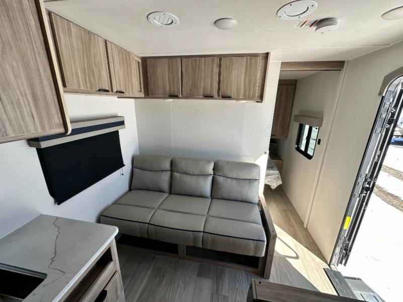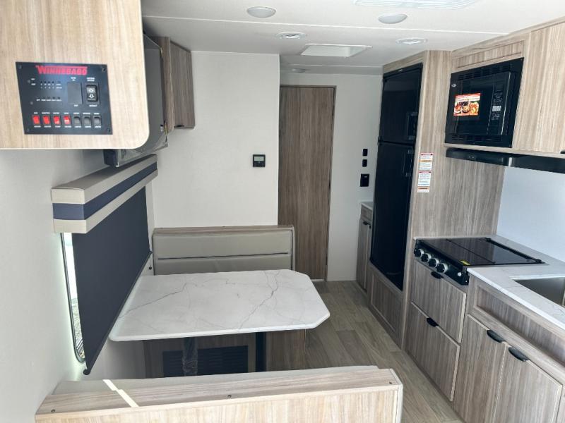 With any Winnebago Access travel trailer you will find thoughtful, clean, and contemporary designs filled with premium features that all have come to expect on any Winnebago towable. The powered stabilizer jacks make setting up camp easy with just the touch of a single button. You will appreciate the stylish exterior front profile and thicker sidewall metal for greater aerodynamics plus strength and durability. With a fully enclosed underbelly you can extend your camping season into the colder months, and the 12 volt tank pad heaters will keep you from having frozen pipes. On the inside, a porcelain toilet, larger skylights for more natural lighting, abundant storage, and spacious living areas make every camping trip more enjoyable. And, the 200 watt solar power reduces the need for shore power which makes it easy to go off-grid. Make your choice today and Access your next adventure!